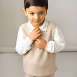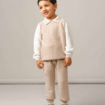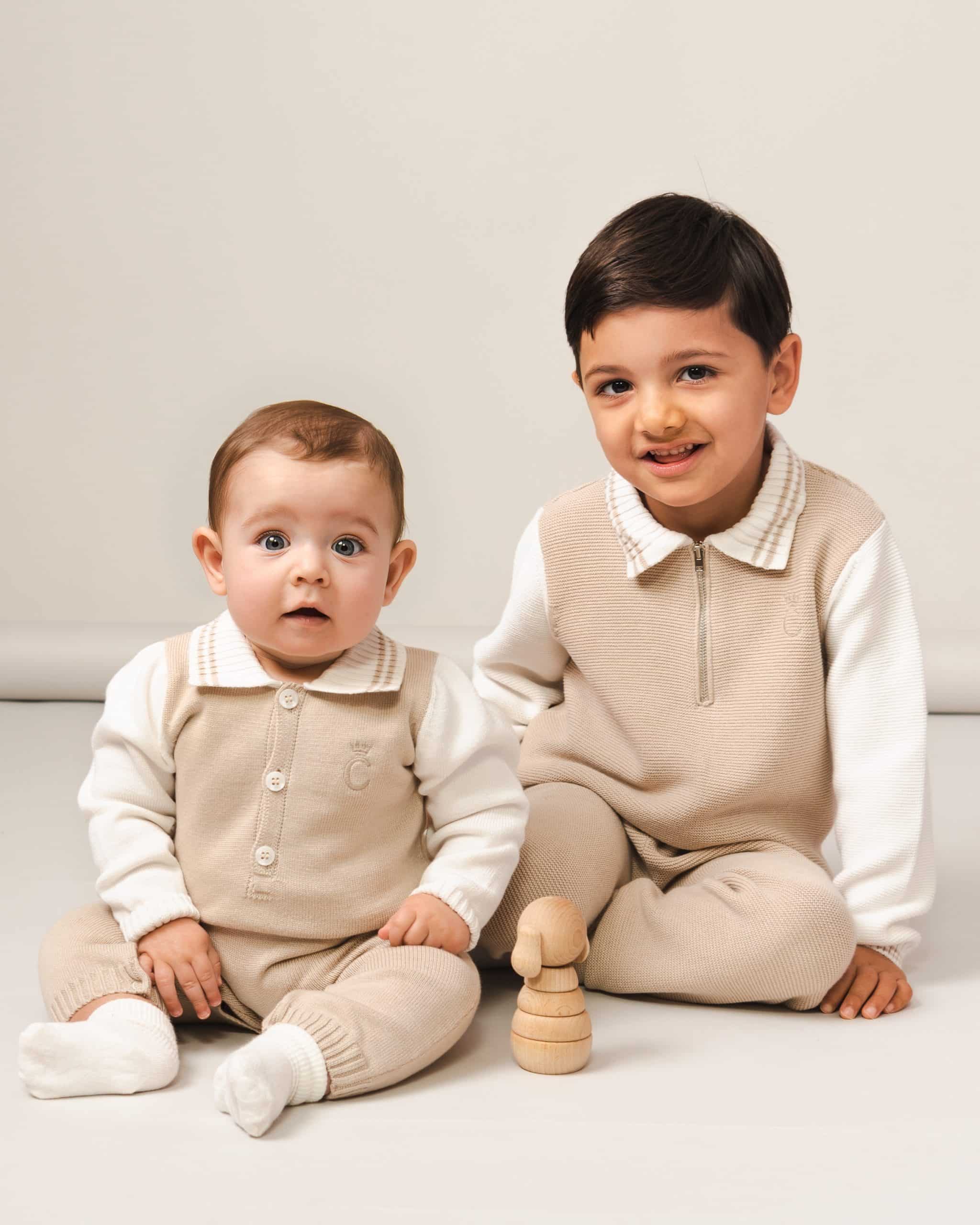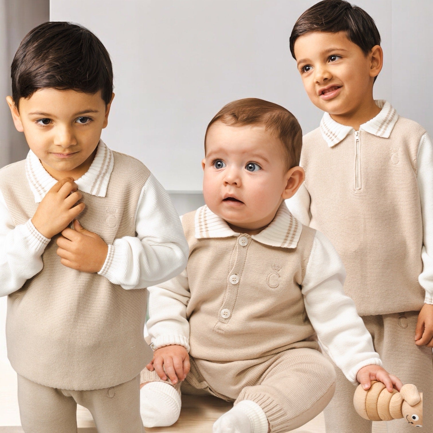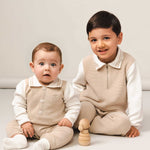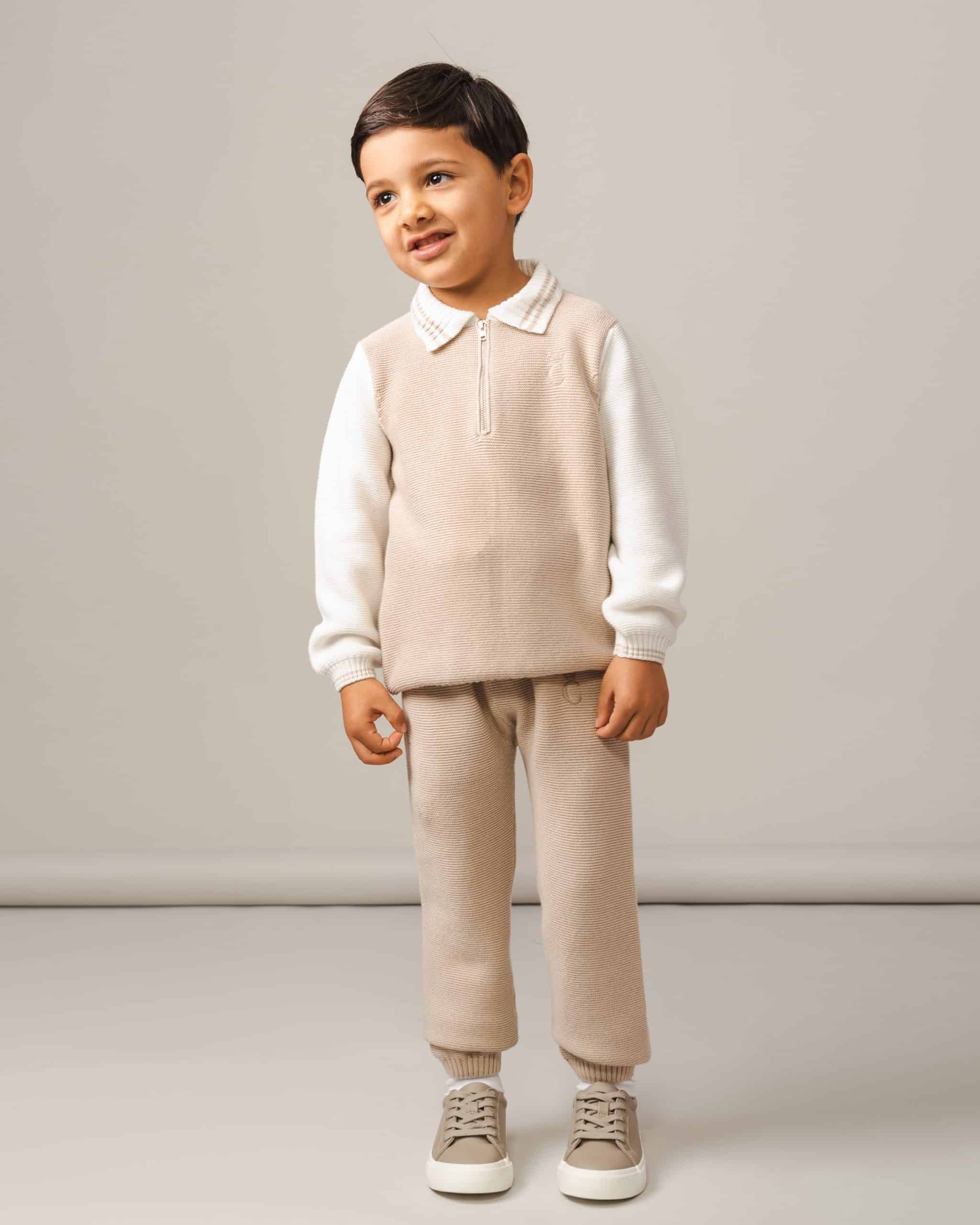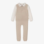 Caramelo Kids Boys Beige Knitted Zip Neck Polo Set