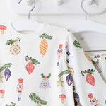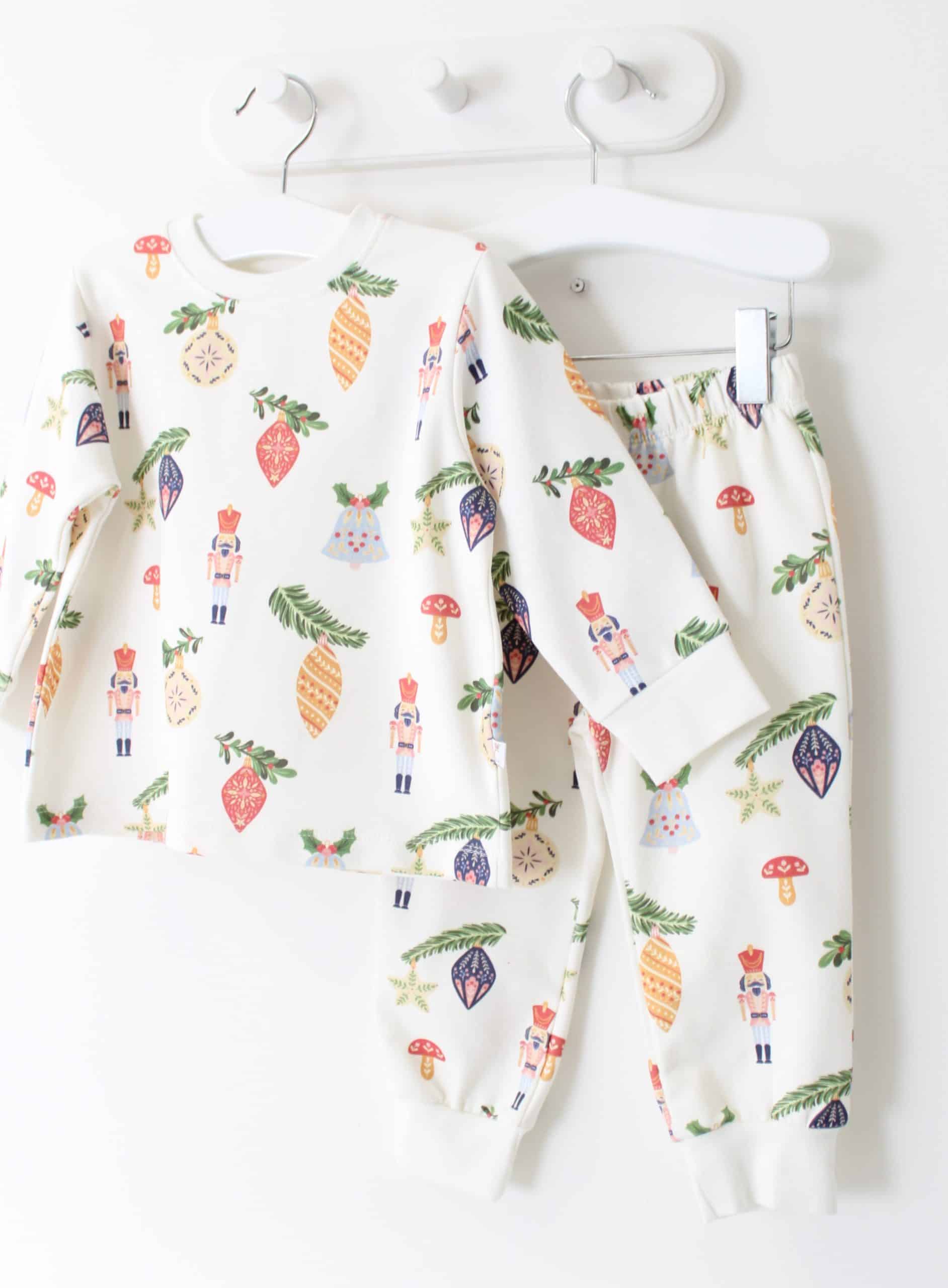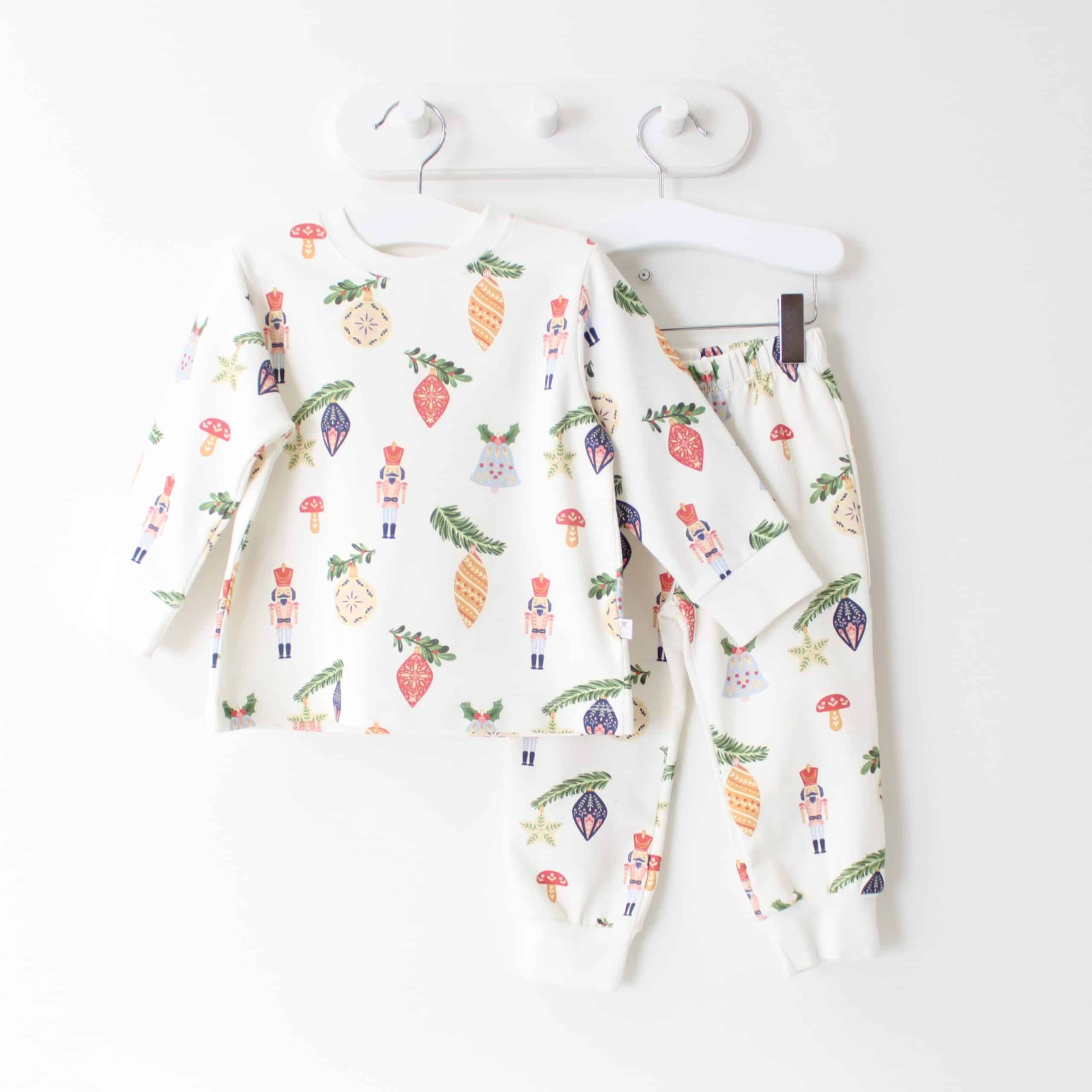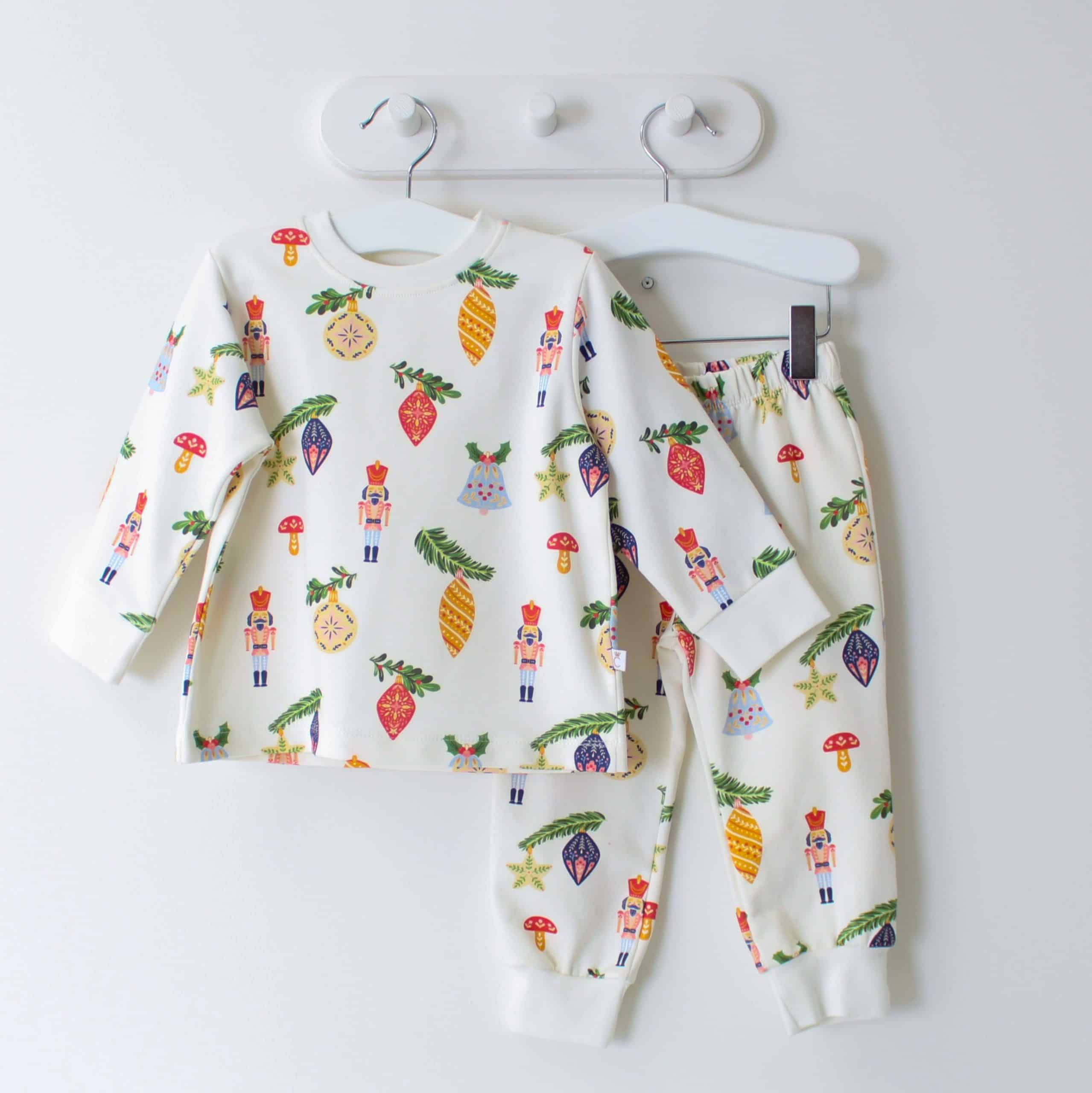 Embracing the festive spirit, this pj set for boys are by Caramelo Kids. Patterned with colourful nutcracker and festive baubles, the long sleeved top & Pants is made in cosy and stretchy cotton jersey with trims with red stitched edges for contrast.
