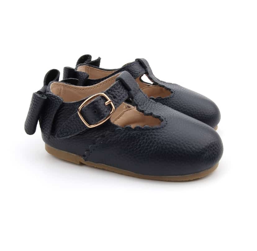 Paris Olivia Girls Leather Shoe With Buckle - Navy
