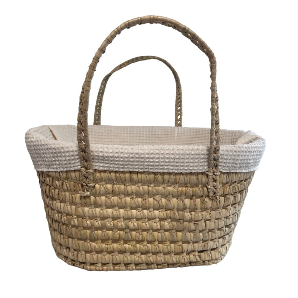 A beautifully hand crafter wicker baby caddy, your neatly organised nappy caddy gives you instant access to all your baby stuff such as nappy's, wipes, bibs, Muslim cloths & more.