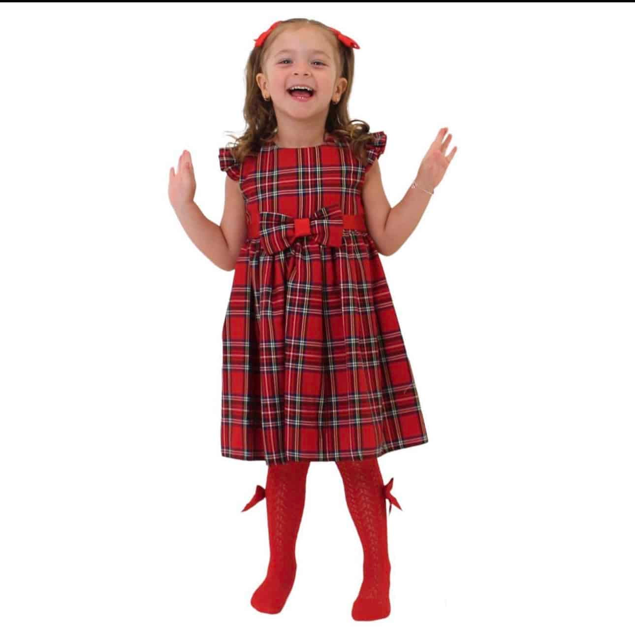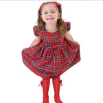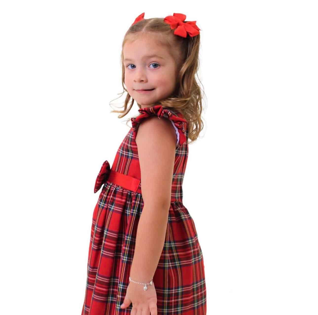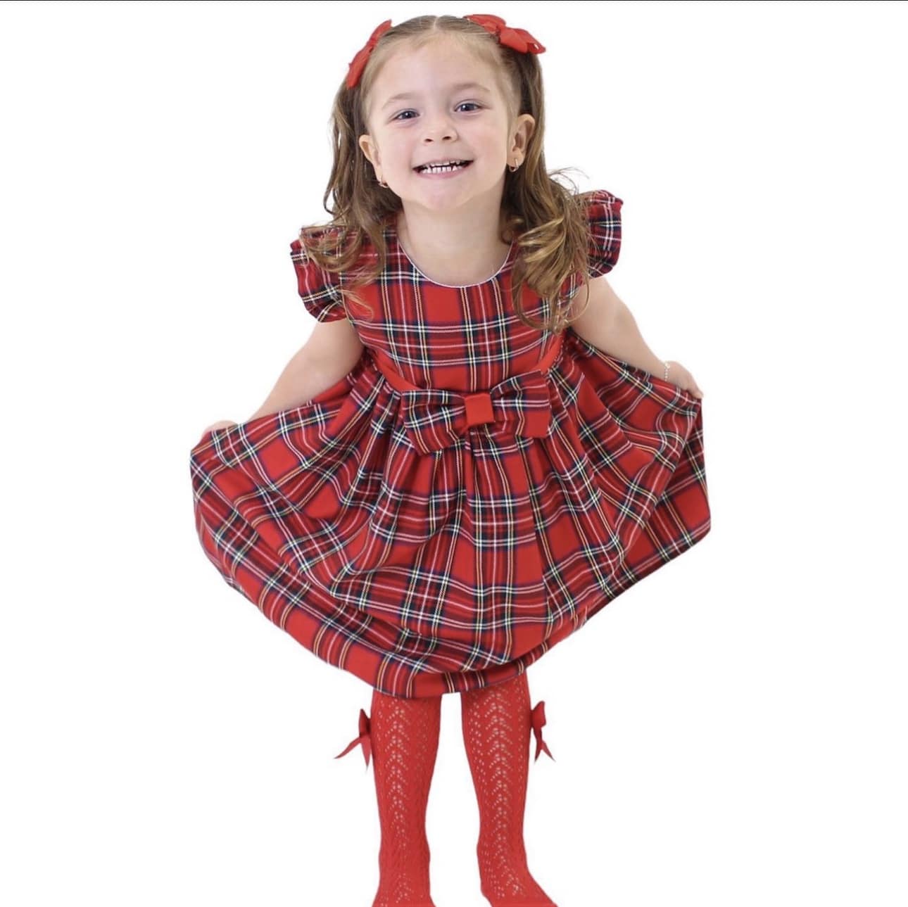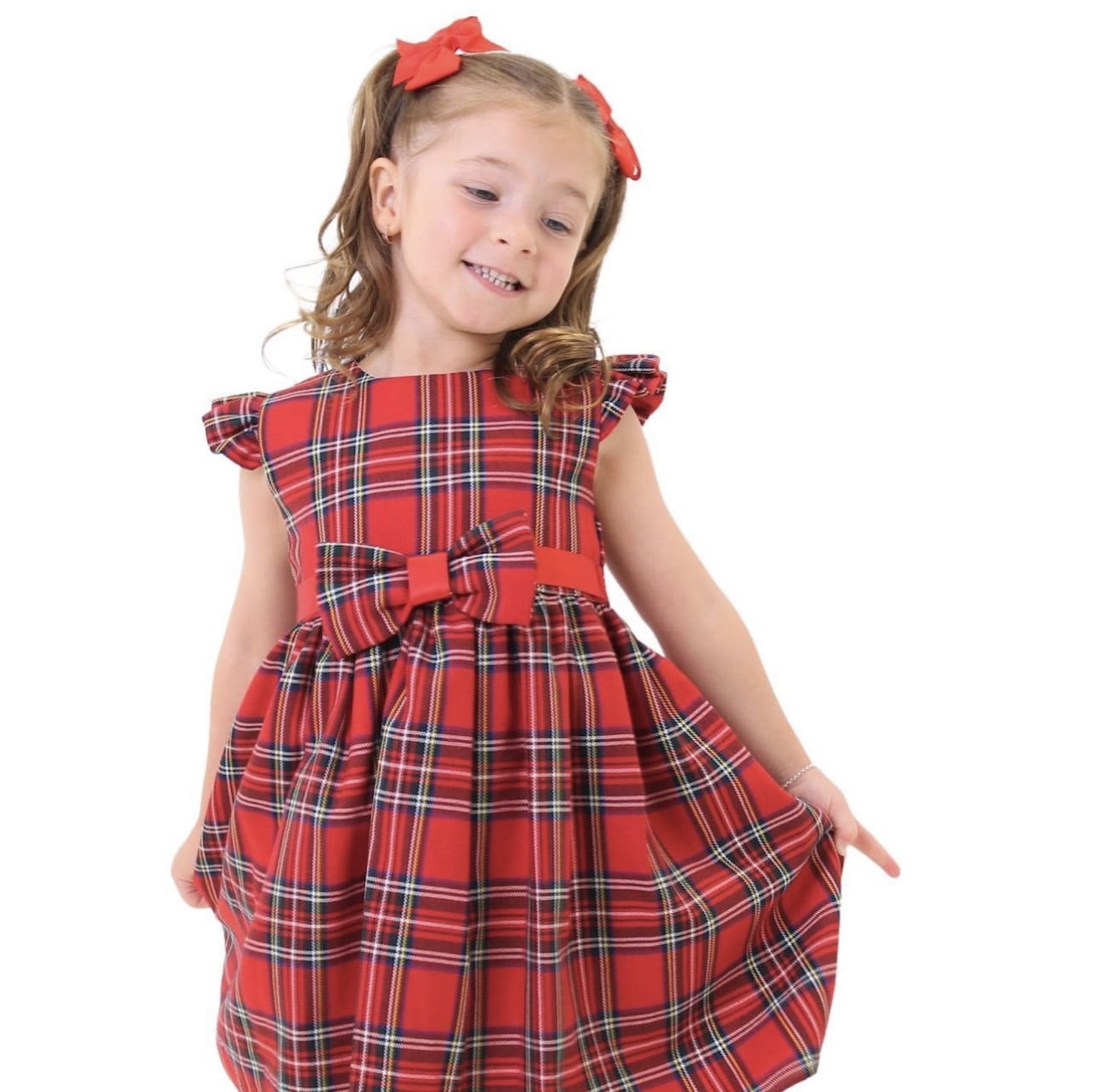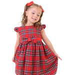 Perfect Little Thing Girls Tartan Satin Bow Dress