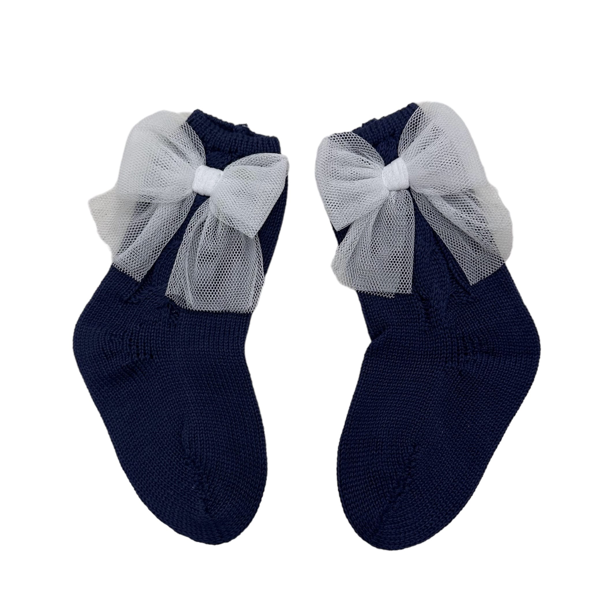 Girls navy socks with beautiful tulle bow on the side. Perfect for summer.