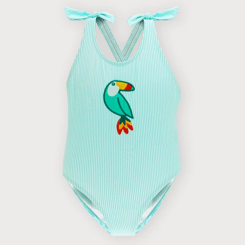 Sardon Girls Green Pin Stripe Swimsuit With Parrot