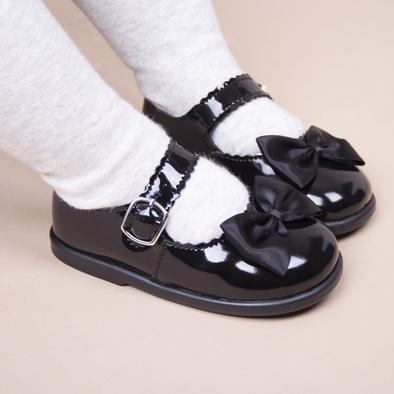 Baypods Girls Black Patent Shoes With Bow Hard Bottom
