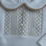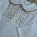 Baby Boys White & Beige Smocked Cotton Sleepsuit