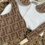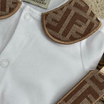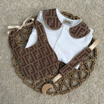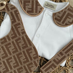 Baby’s Unisex FF Brown inspired Handmade Sleepsuit, Bib & Dummy Clip Set