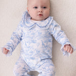 Baby Girl's Blue Safari Toile Collared Sleepsuit