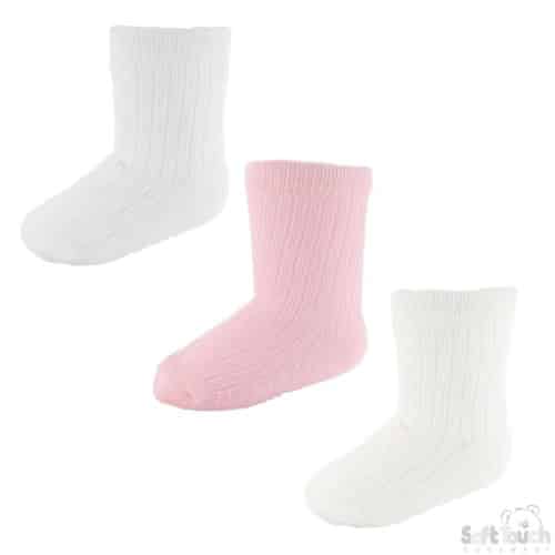 DESIGN/COLOUR: 3 Assorted Colours w/Spots on Sole: Cream, Pink & White