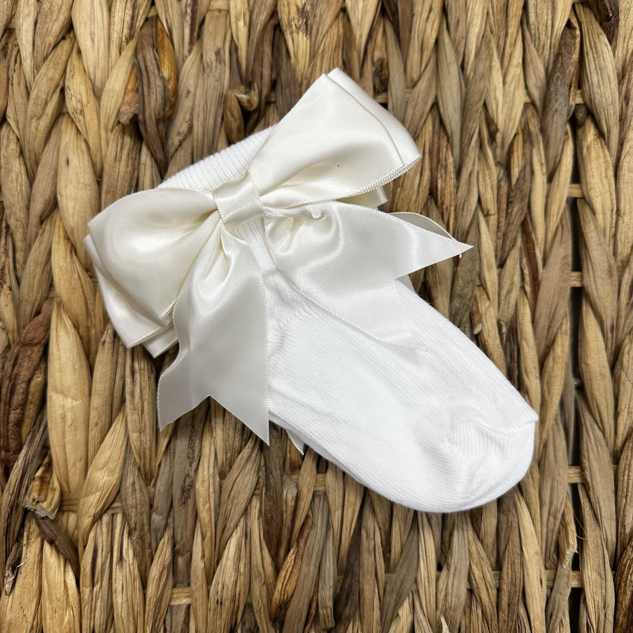 Soft Touch Girls Bow Ankle Socks - Ivory