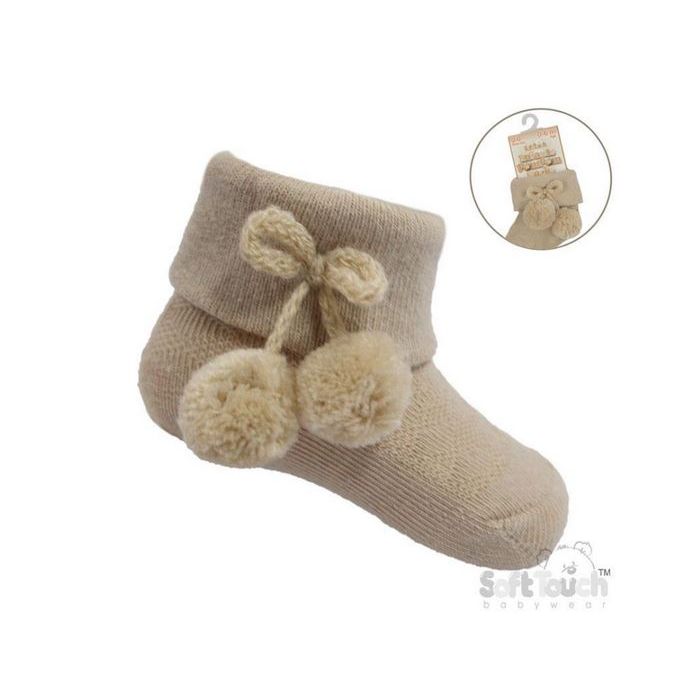 Soft Touch Pom Pom Ankle Socks - Beige