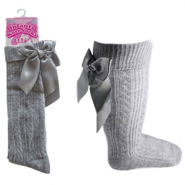 Soft Touch Girls Cotton Bow Knee Socks - Grey
