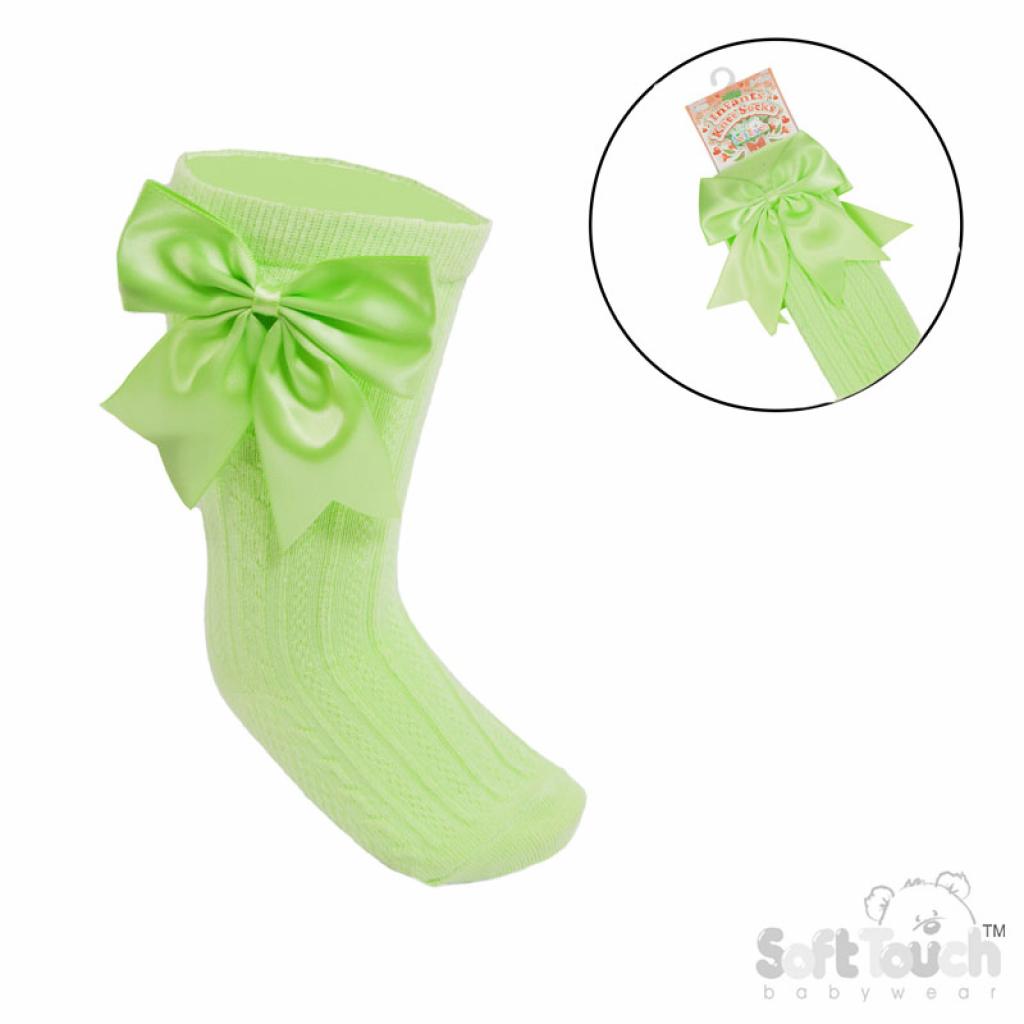Soft Touch Girls Cotton Green Knee Socks With Bow