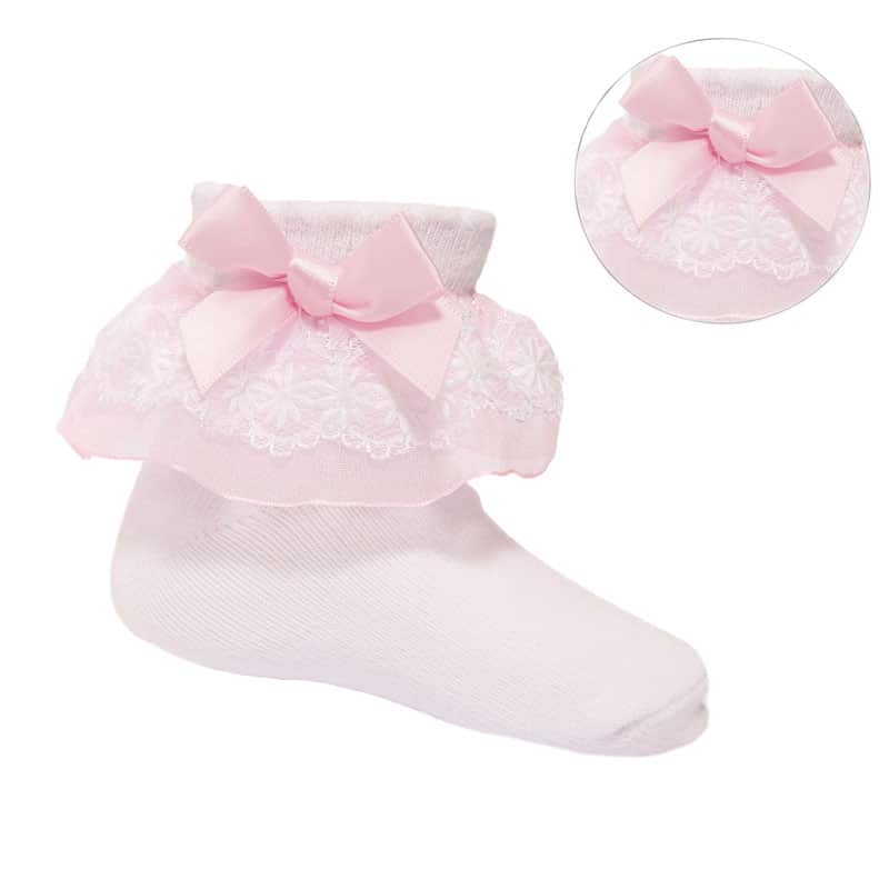 Soft Touch Girls Organza & Lace Ankle Socks - Pink