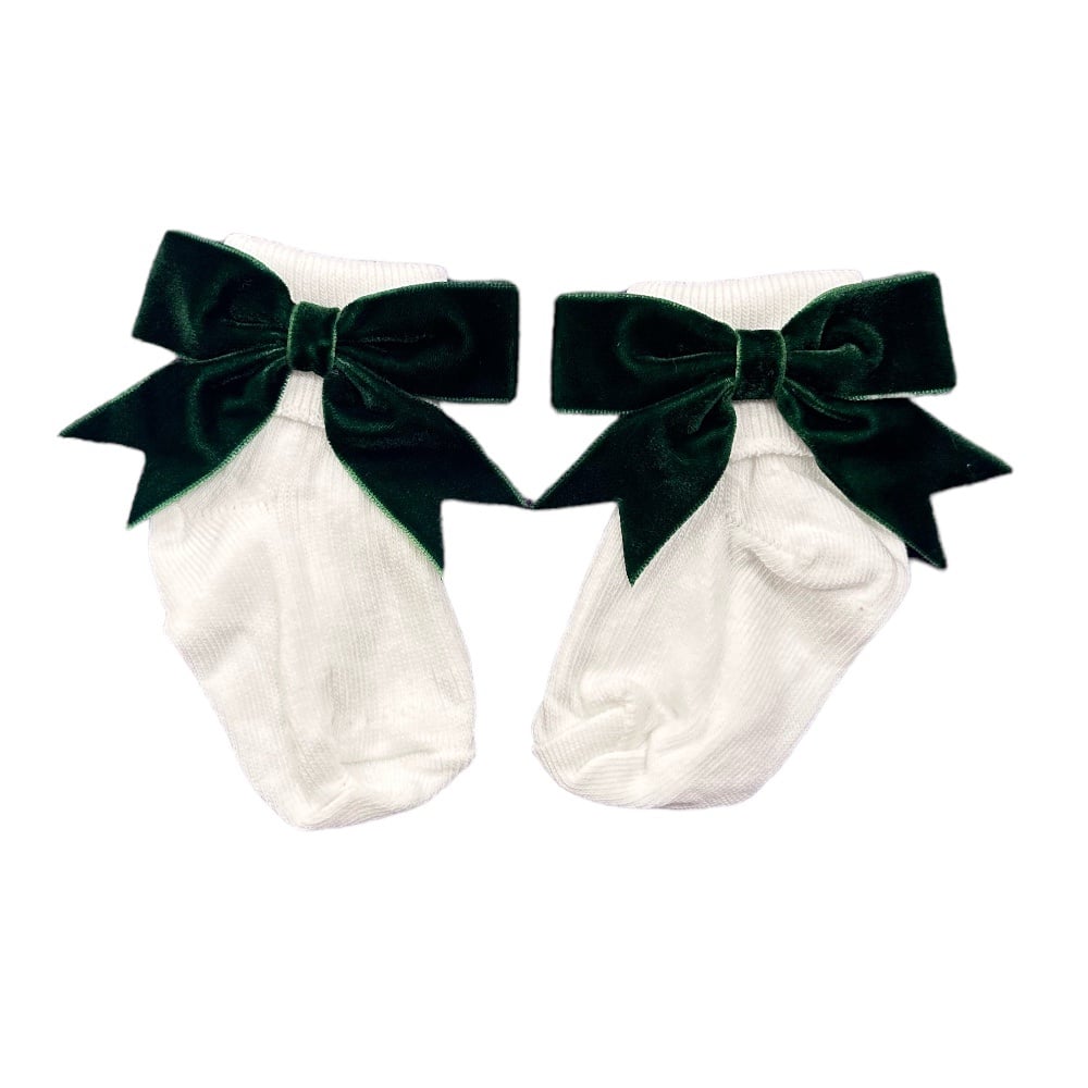 Beautiful little girls Velvet Bow ankle socks, from newborn to 6 years.