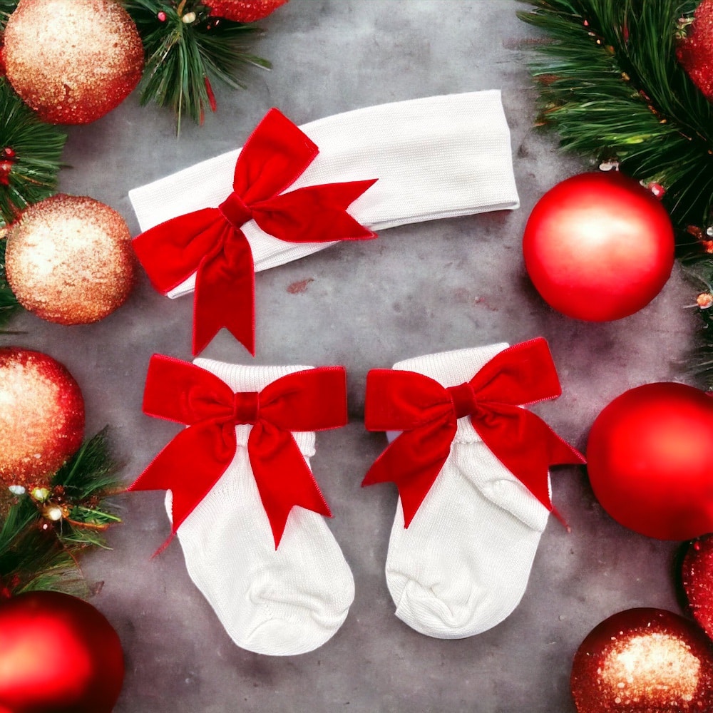 Soft Touch Girls White Ankle Socks & Headband Set - Red Velvet