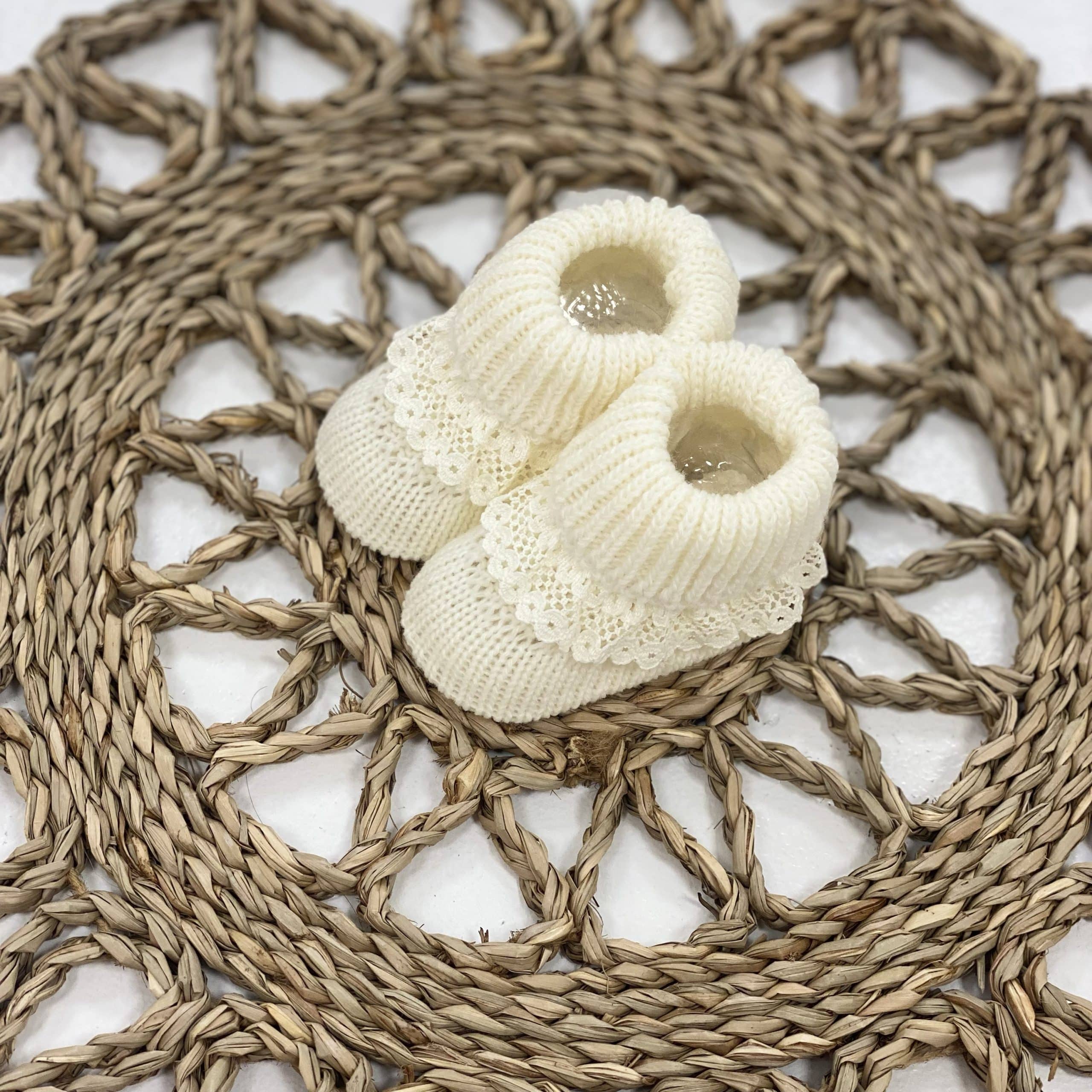 Soft Touch Baby's Soft Knitted Lace Booties - Ivory