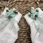 Soft Touch Premature Girls Flower Ankle Socks -Green
