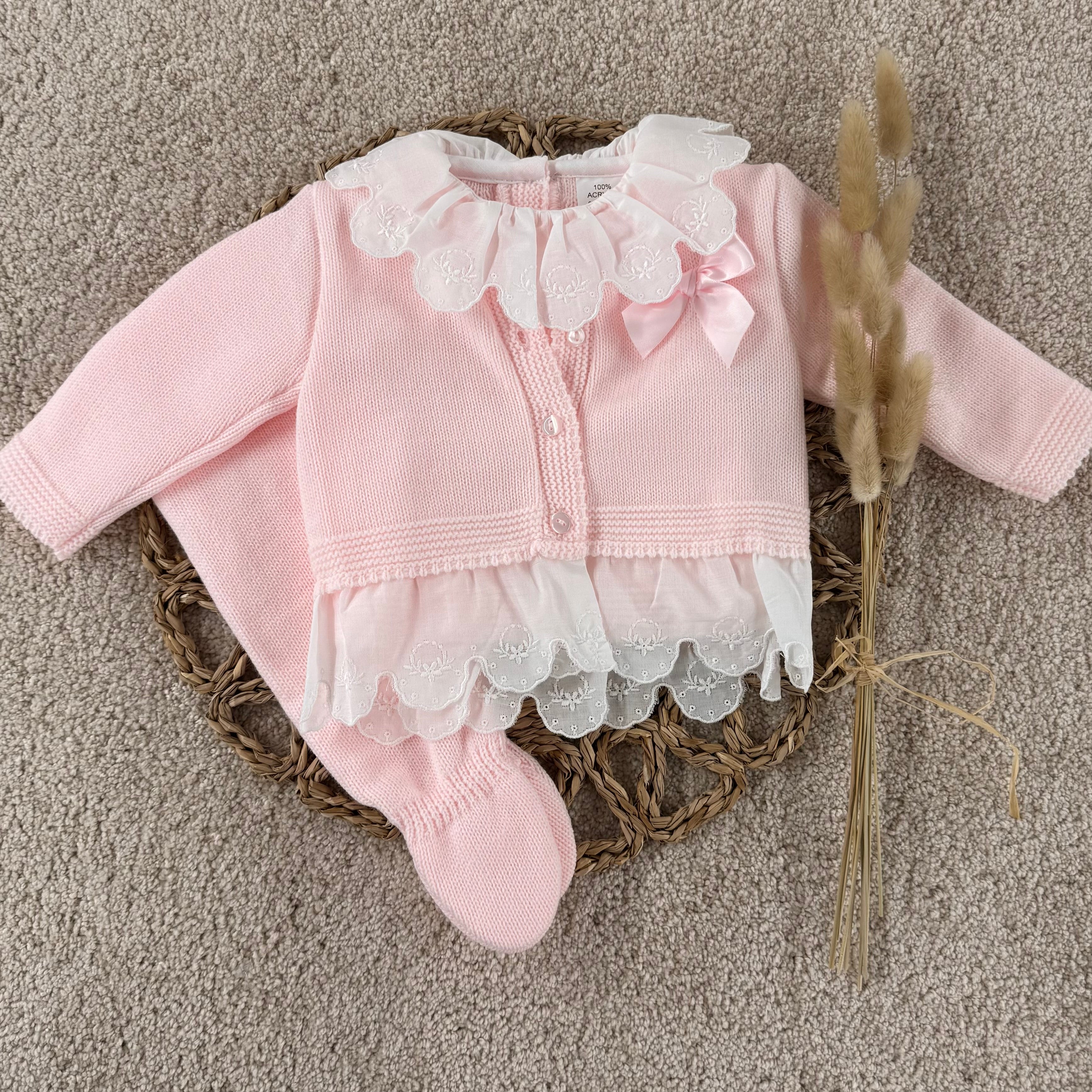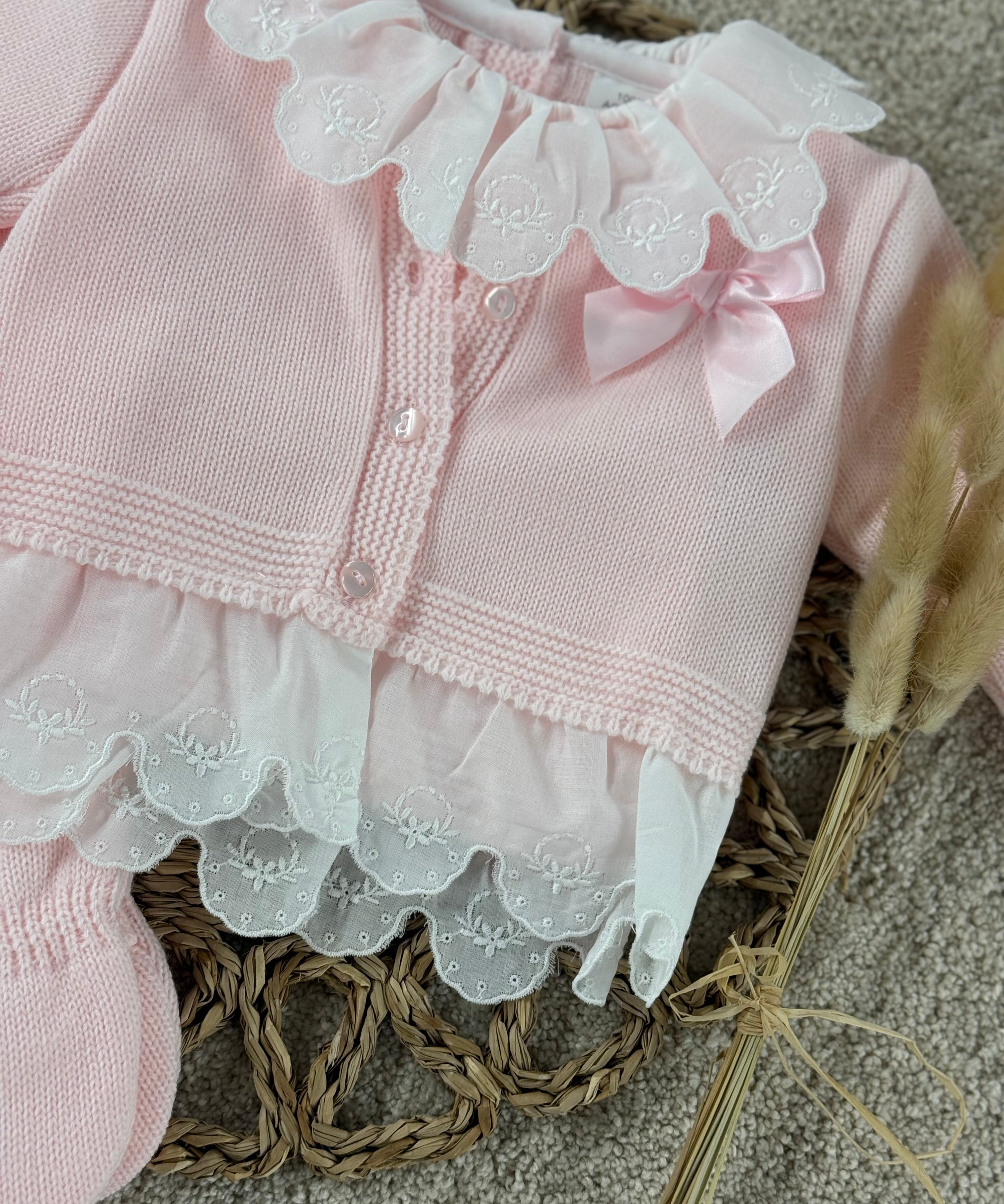 Baby Girl's Dusky Pink Spanish Knitted Outfit