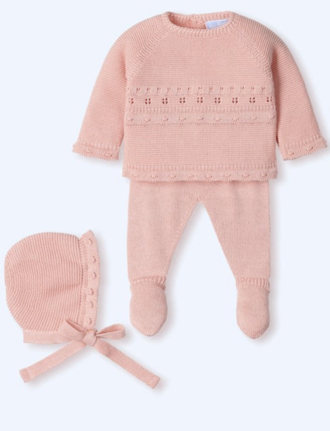 Baby Girls Pink Knitted 3 Piece Outfit With Bonnet - Newborn