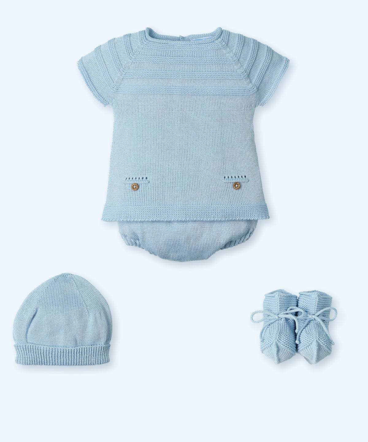 Baby Boy's Mac ilusion Blue Knitted Outfit - Newborn