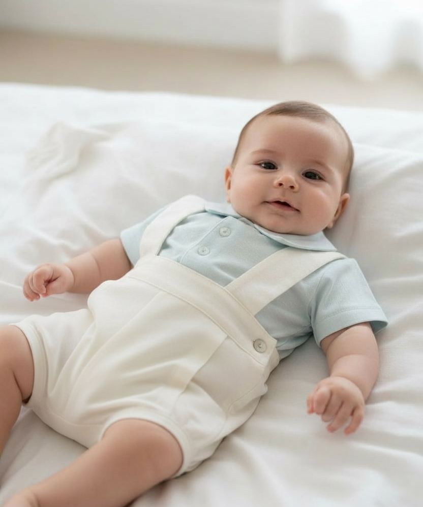 Baby Boy's Mac ilusion Blue White Summer Dungarees - 3 Months