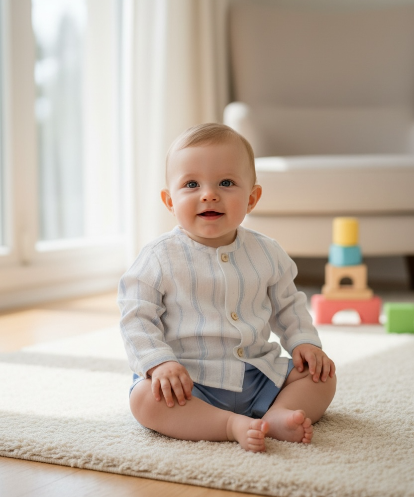 Baby Boy's Mac ilusion Linen Shorts & Shirt- 6 Months