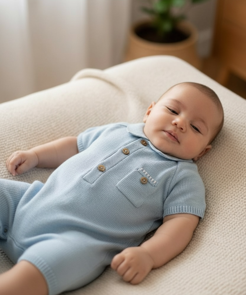 Baby Boy's Mac ilusion Blue Knitted Romper - 3 Months