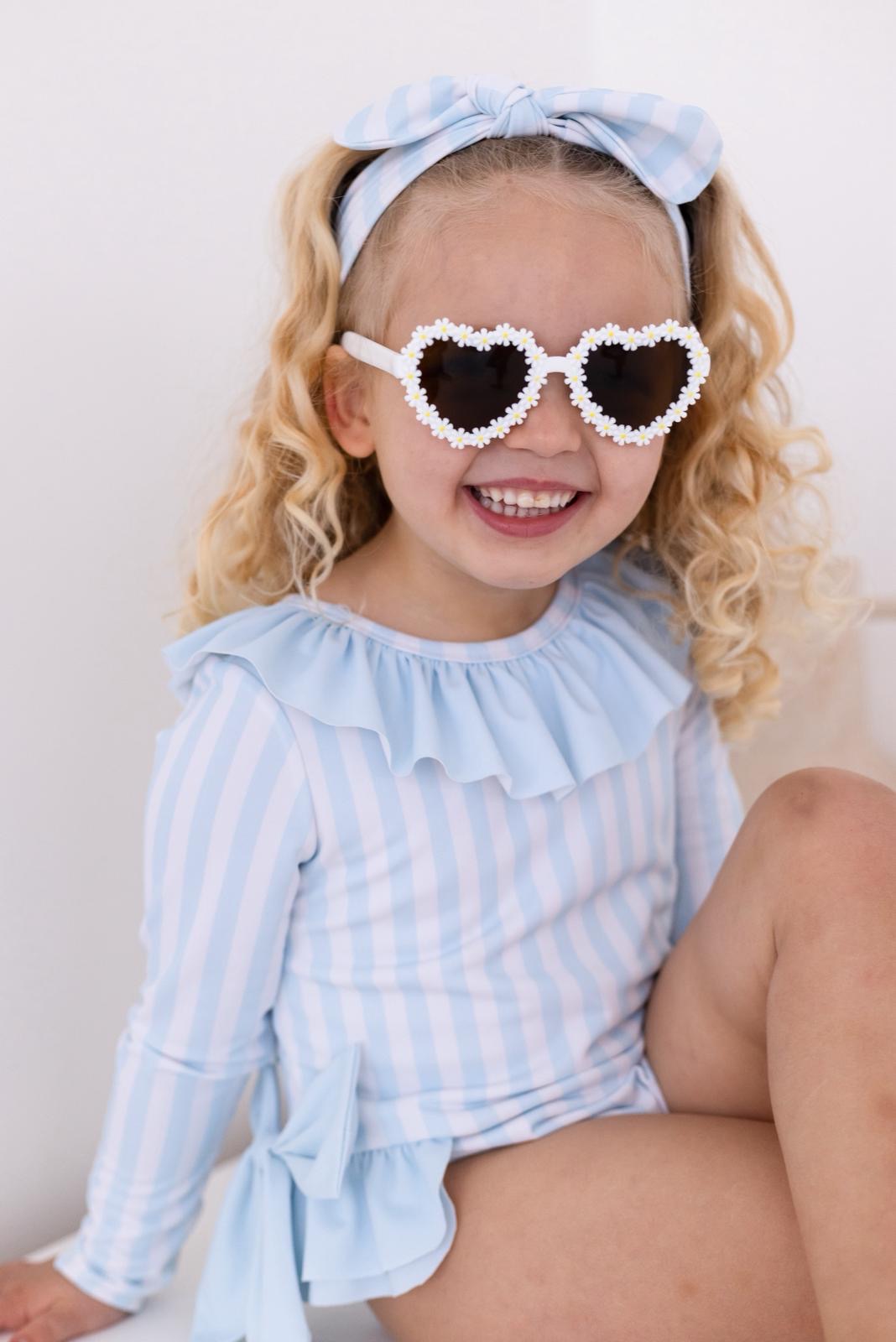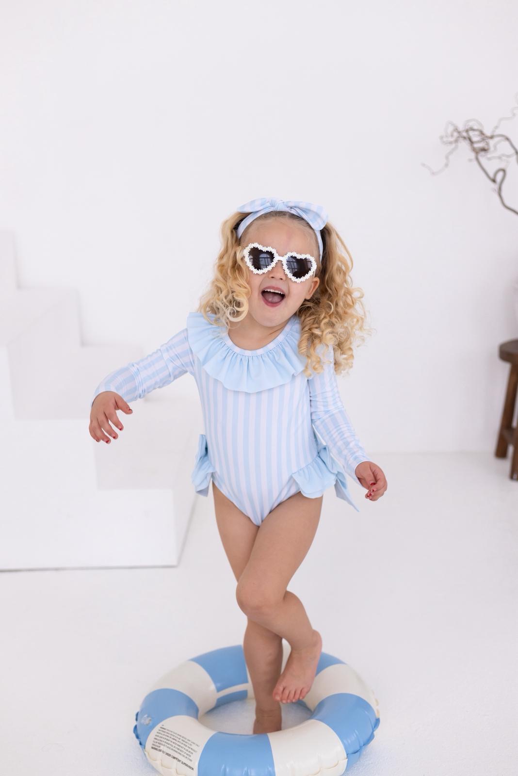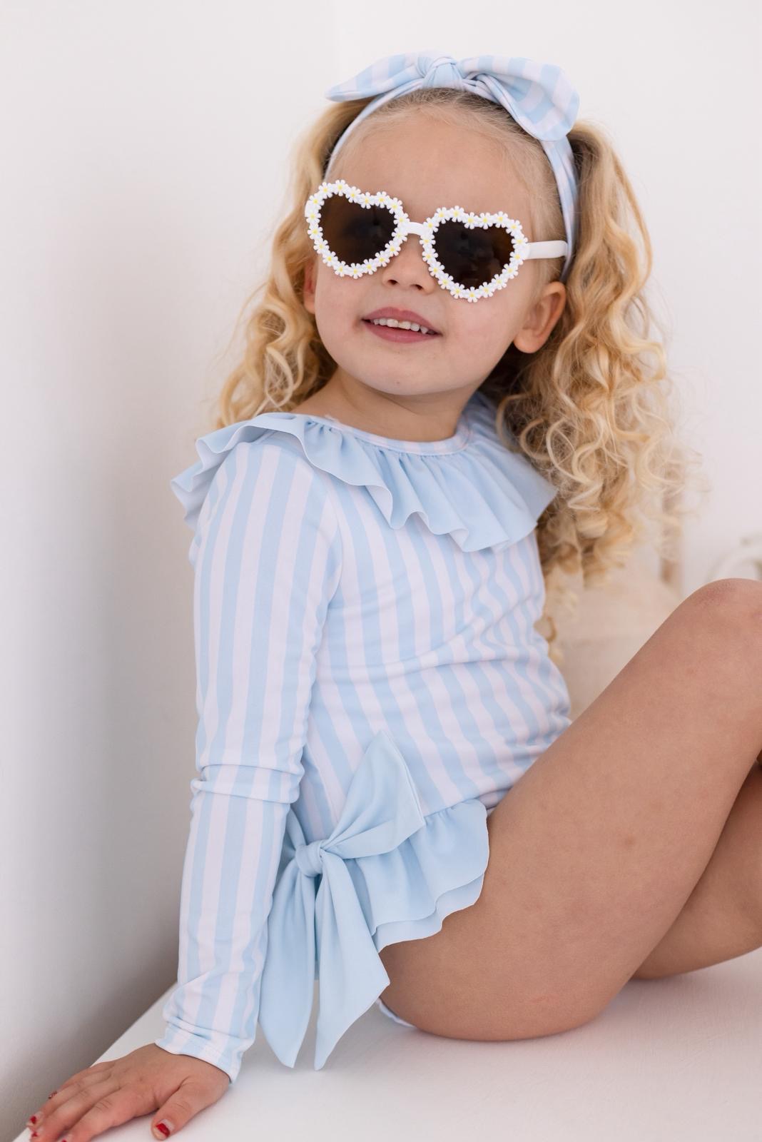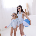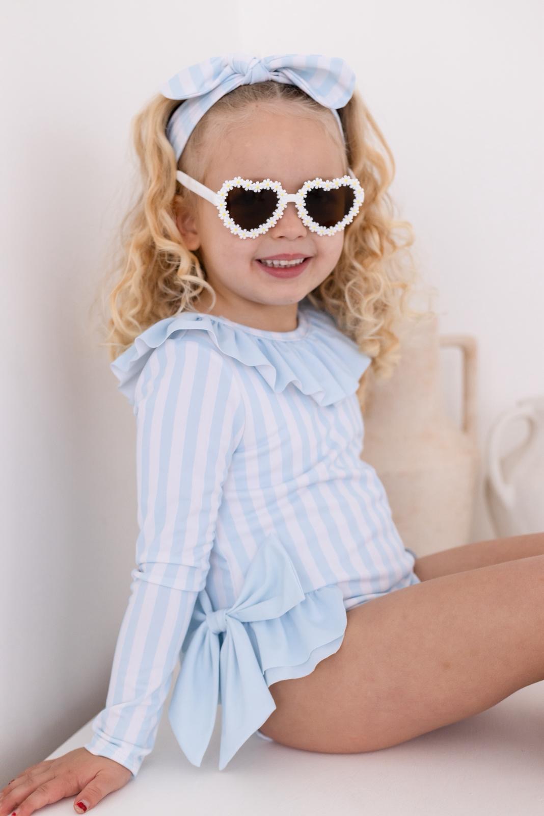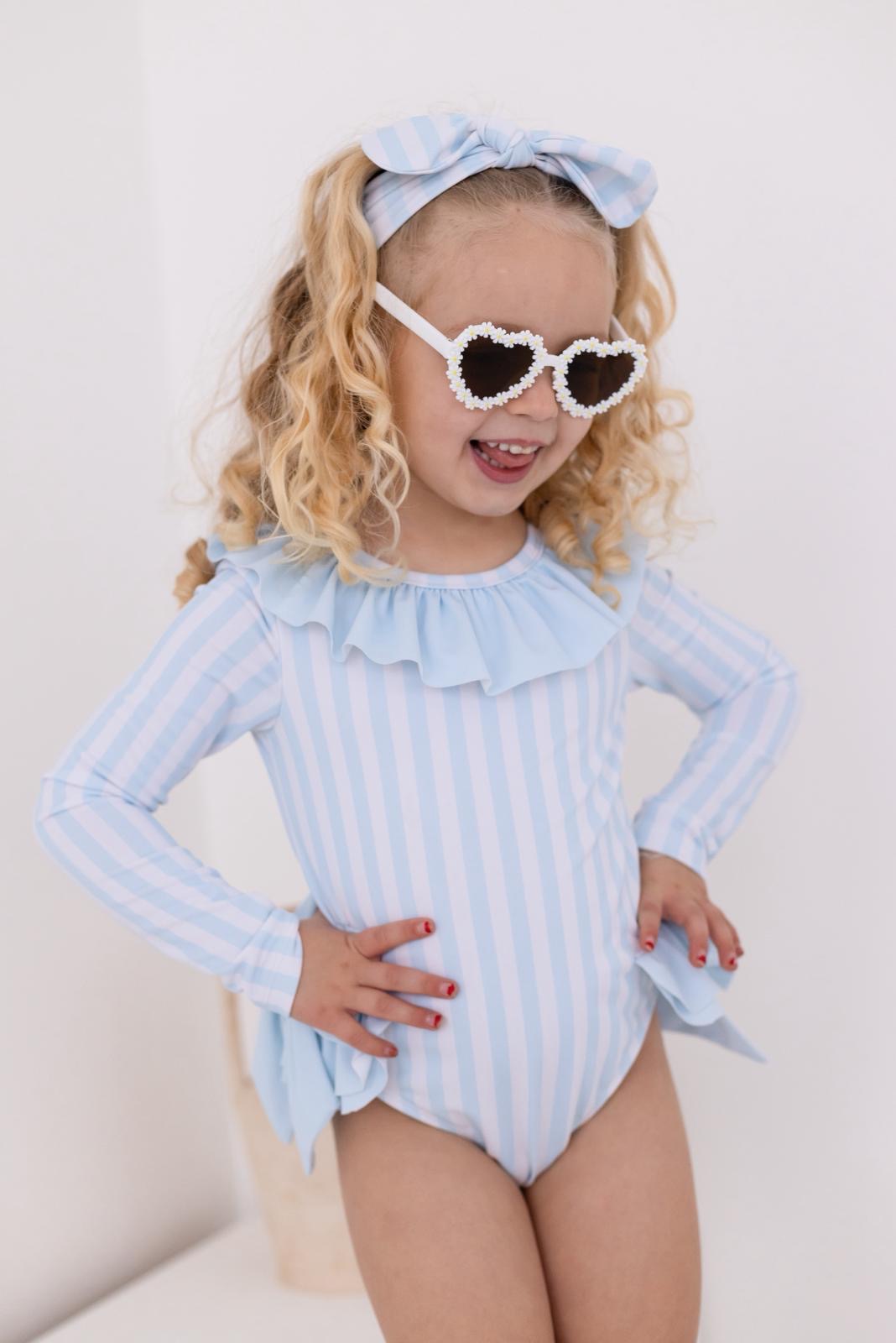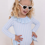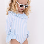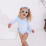 PRE-ORDER Baby Girls Pastel Blue Stripe Long Sleeve Swim Outfit