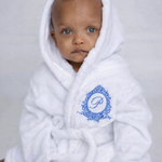 Wrap your little one in comfort and luxury with our Personalised Boys white Hooded Dressing Gown, beautifully embroidered with a classic crest design and custom initial. Made from ultra-soft plush fabric, this adorable dressing gown is perfect for cosy mornings, bath time snuggles, and special bedtime routines.