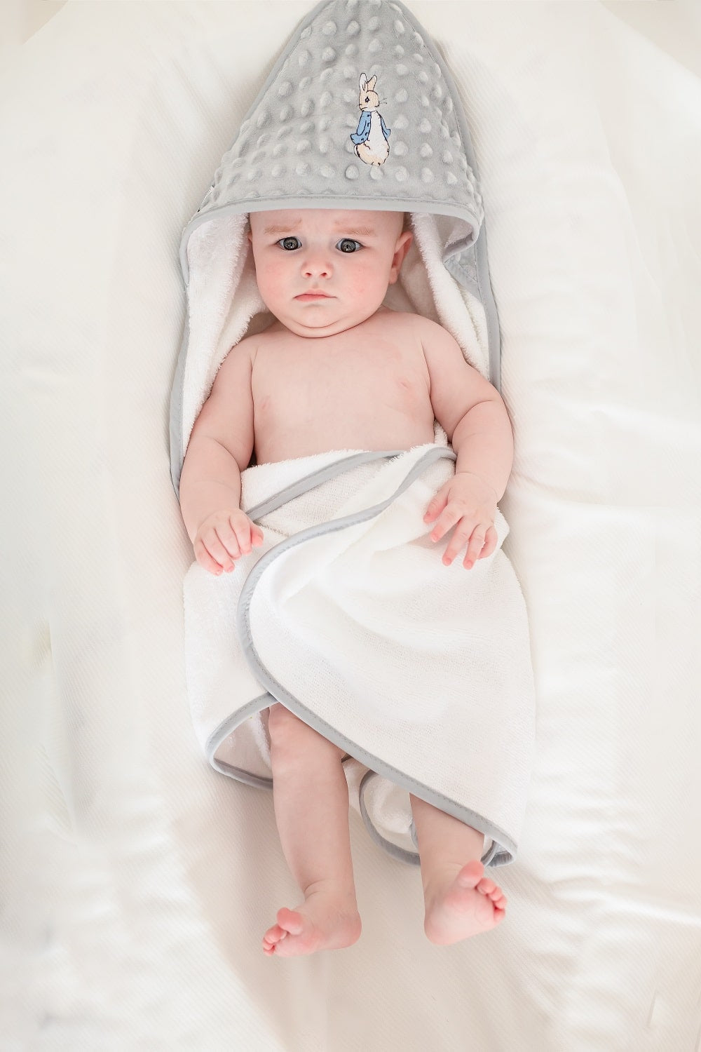 Peter Rabbit Baby Hooded Dimple Towel - Grey