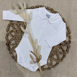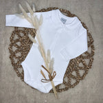 Babidu Unisex White Button up Cotton Long Sleeve Bodysuit