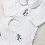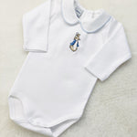 Personalised Peter Rabbit White Cotton Long-Sleeve Bodysuit