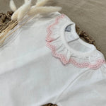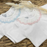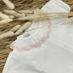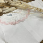 Made in soft cotton jersey, with a pink edged collar.