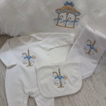 Baby Boys 4-Piece Carousel Coming Home Set – Sleepsuit, Bib, Muslin & Shawl