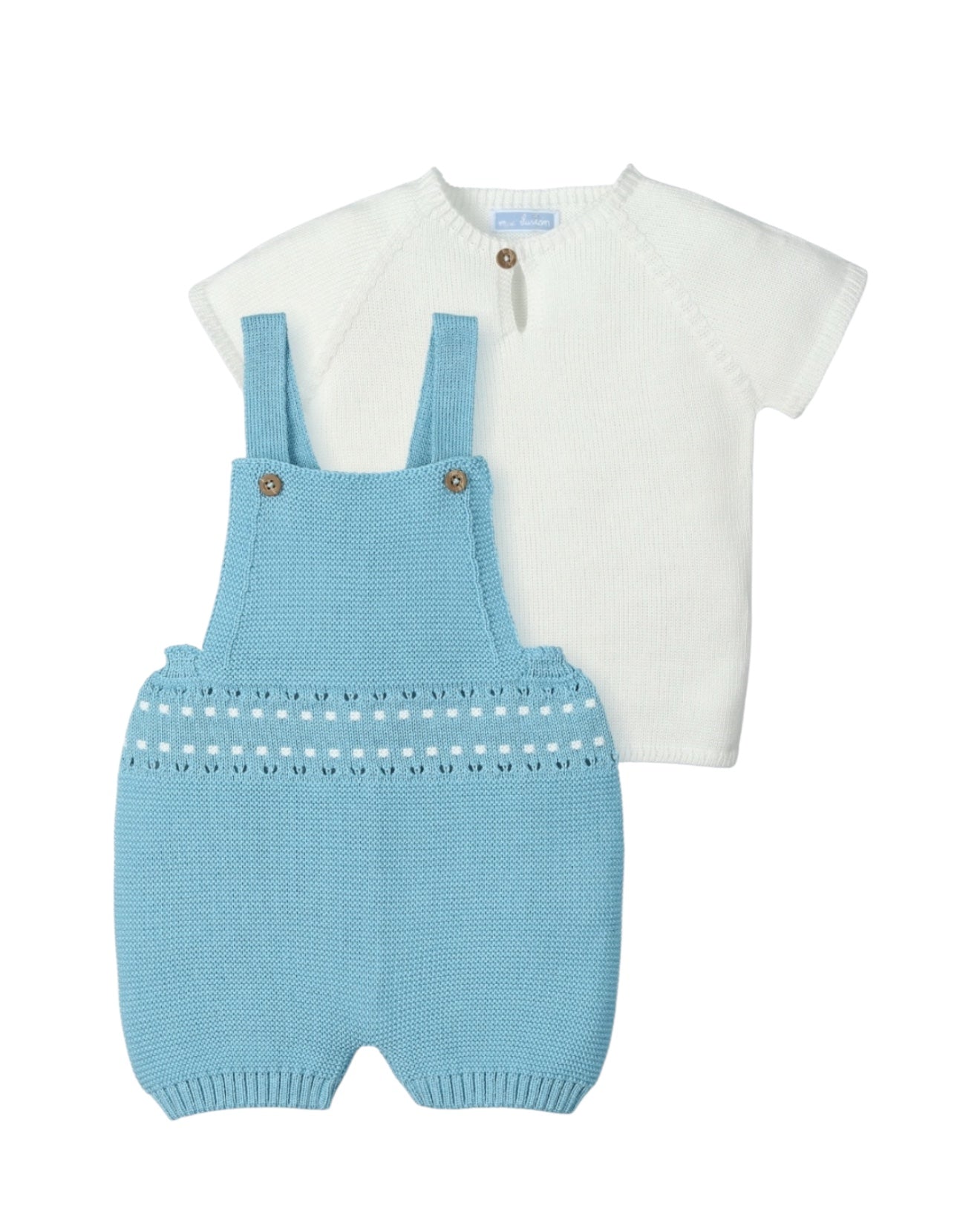Baby Boys Turquoise Knitted Top and Romper - 3 Month