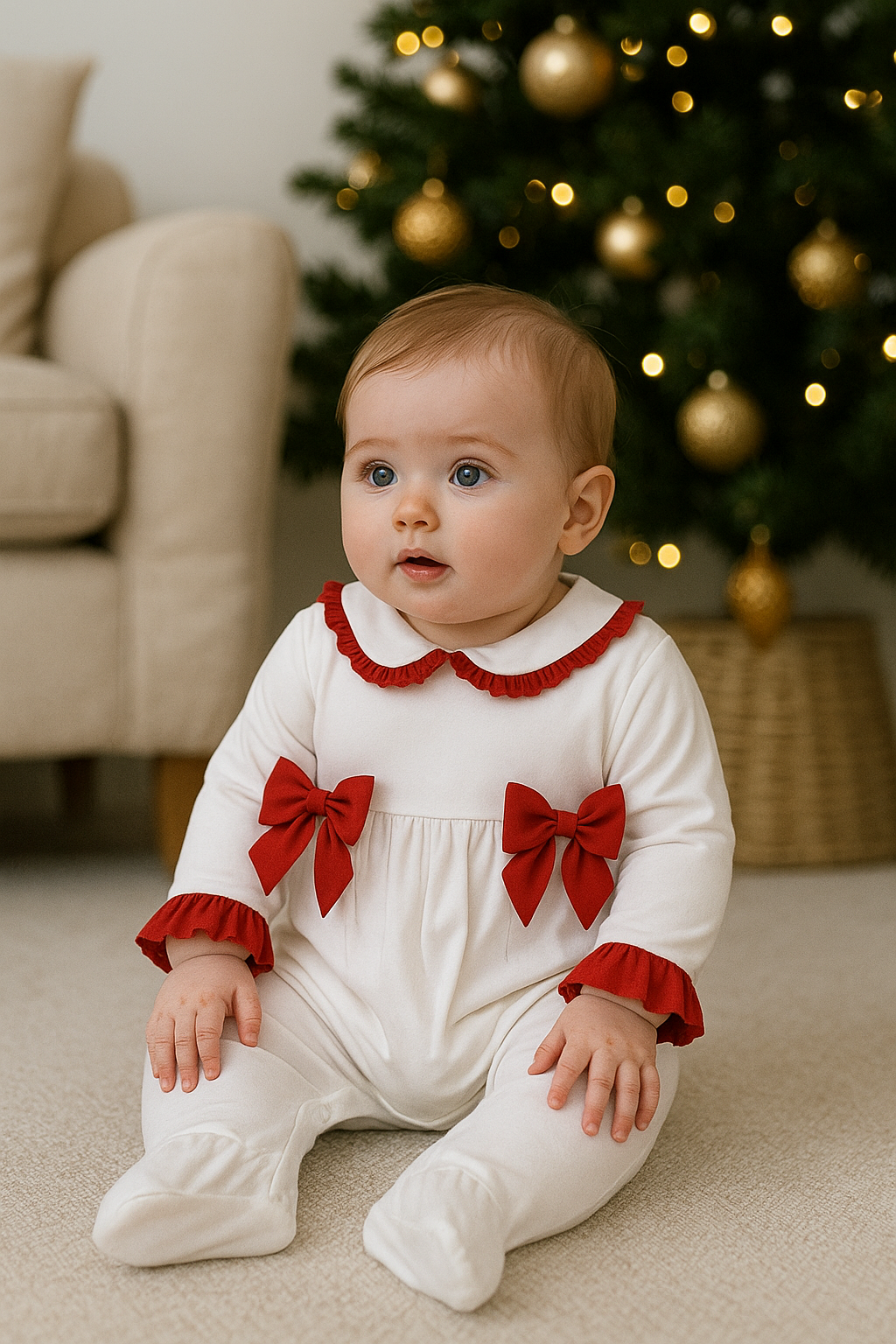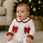 Luxury Baby Girl Red Bow Sleepsuit – Perfect for Christmas 🎀