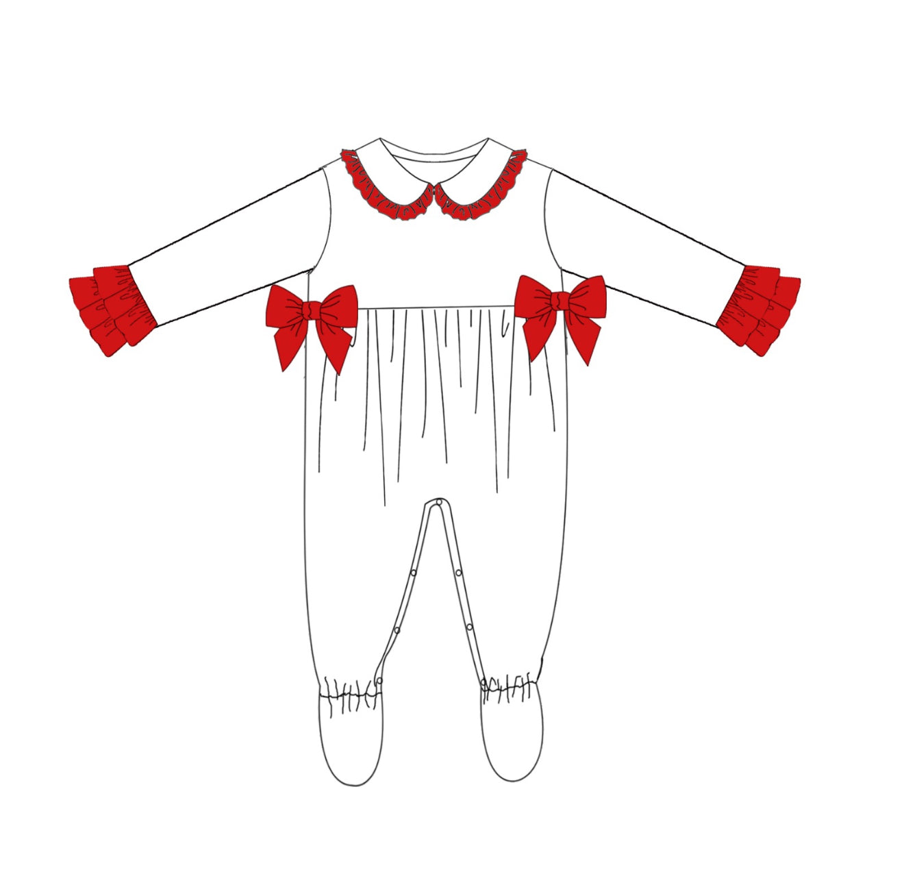 Our Luxury Baby Girl Red Bow Sleepsuit is the perfect festive outfit to match our popular Polar Express PJs. Designed with elegance and comfort in mind, this beautiful sleepsuit features delicate red frill detailing on the collar and cuffs, complete with statement satin bows on each side for that extra touch of Christmas charm.