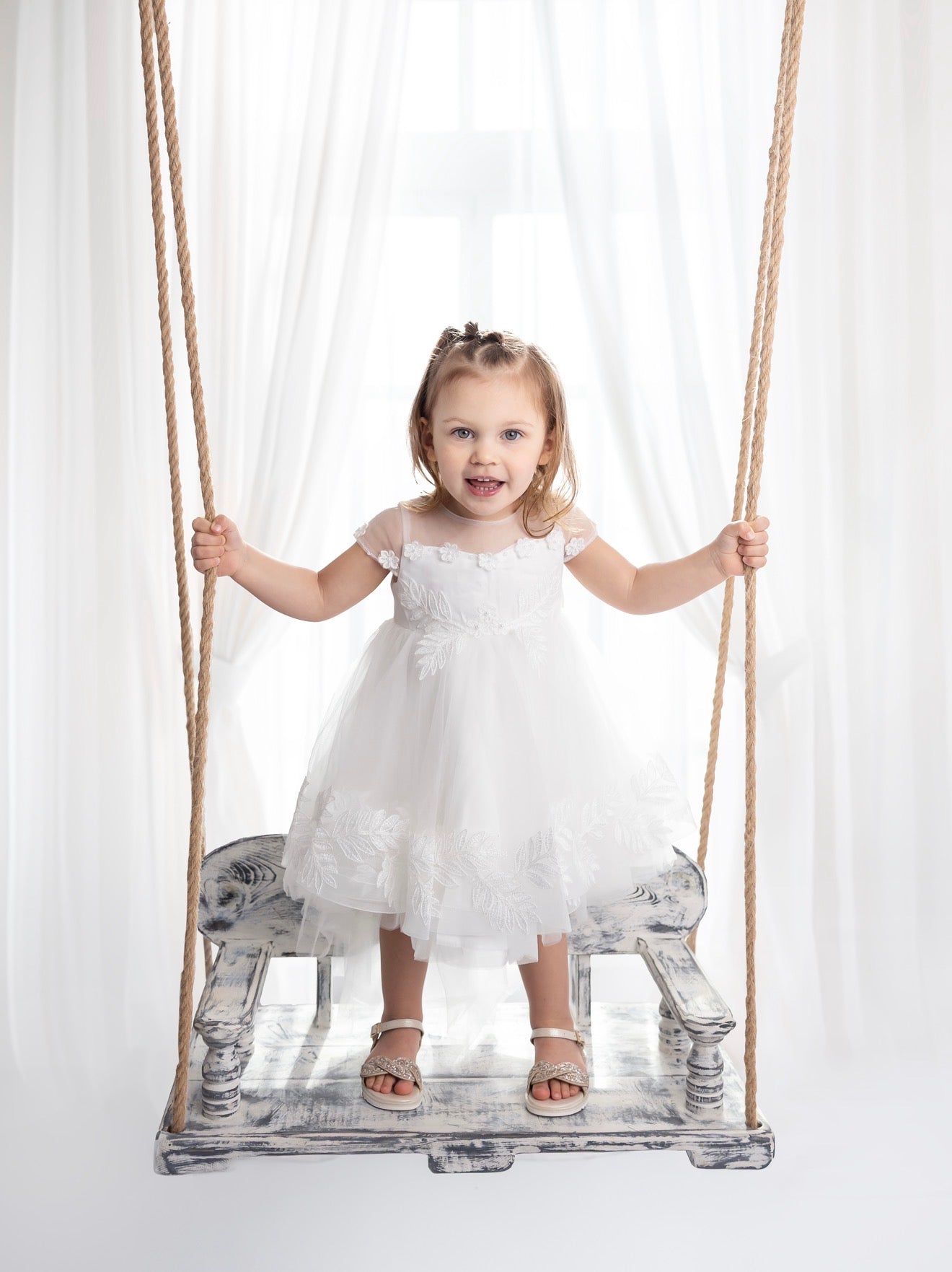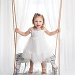 These dresses are specially ordered in for you. They can take upto 14 days , all christening wear is NON REFUNDABLE Make her special day unforgettable with our Ivory Luxury Christening Dress, designed for the most precious moments. Crafted with layers of soft flowing tulle and delicate embroidered detailing, this gown is the perfect blend of elegance and innocence.