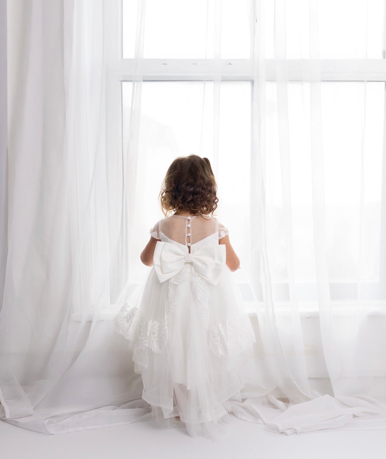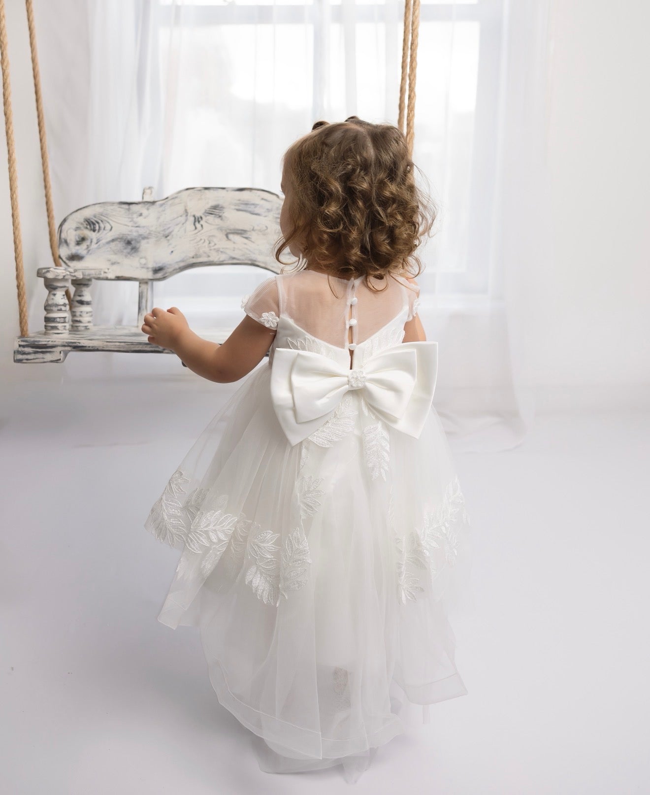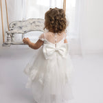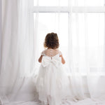 Baby Girls Ivory Luxury Tulle Christening Dress with Statement Bow