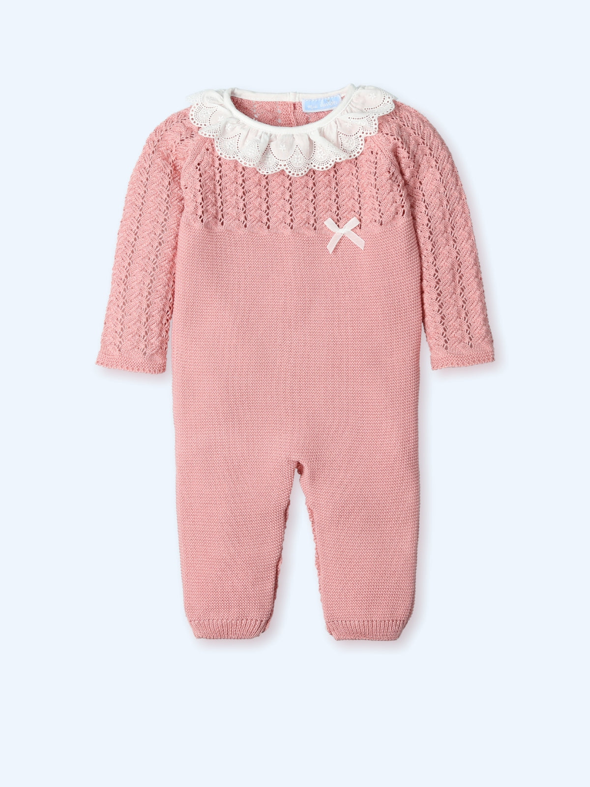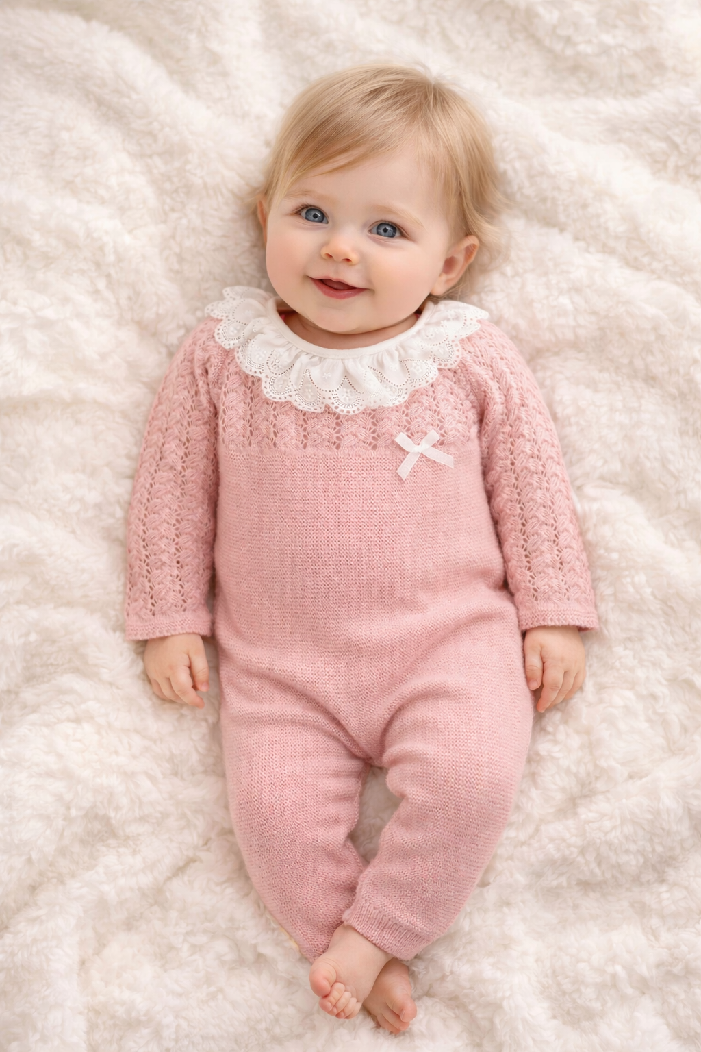 Baby Girls Dusky Pink All In One Knitted Romper - 3 Months