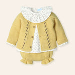 Mac Ilusion Baby Girls' 3-Piece Outfit – Mustard Cardigan, Frill Collar Shirt & Knitted Knickers