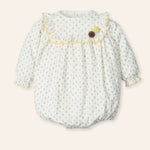 Keywords included: Mac Ilusion baby girl romper, baby cord romper girl, baby girl romper with pom poms, frill chest romper, long sleeve cord romper, baby girl autumn outfit, Spanish baby clothes