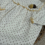 Add classic charm to your baby girl’s wardrobe with this beautifully crafted cord romper from Mac Ilusion. Made from soft, high-quality corduroy, this long-sleeved romper features a sweet frill across the chest and two soft pom poms on the front for a playful, elegant finish. Designed for comfort and warmth, it’s perfect for autumn and winter days, whether for everyday wear or special occasions.