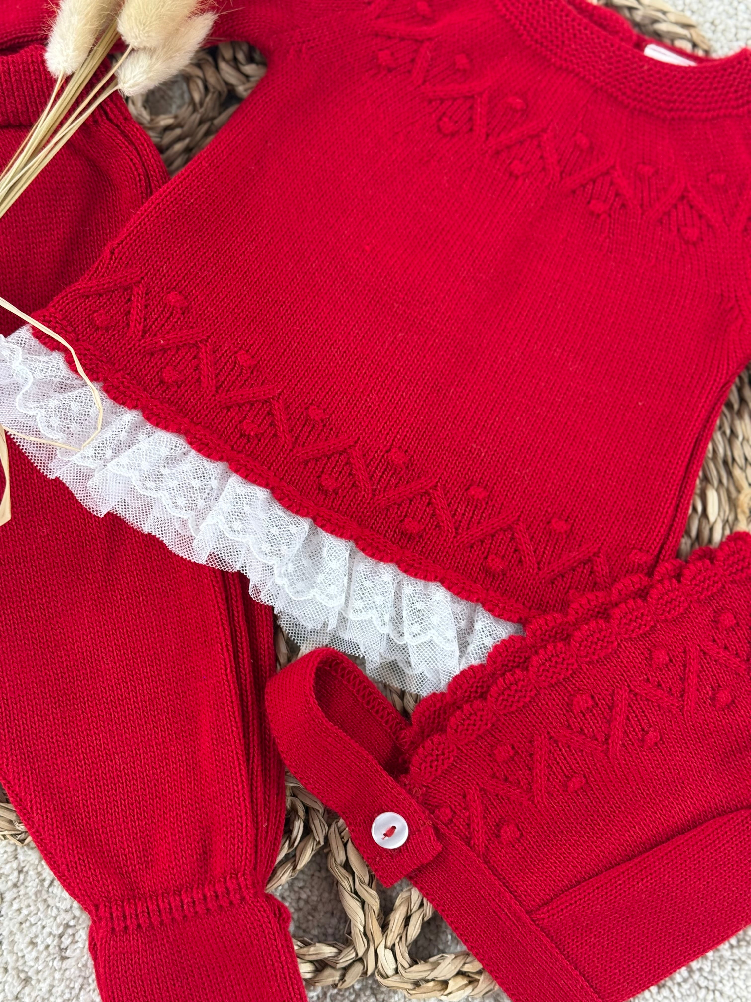 Baby Girl's Red Frill 3 Piece with Bonnet