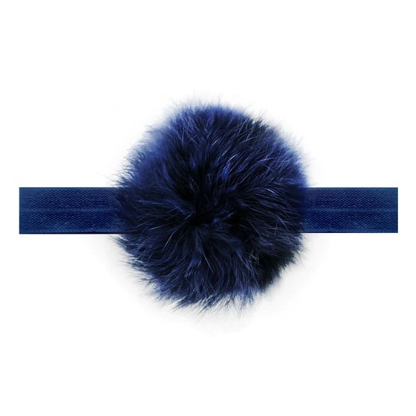 Large rabbit fur Pom Pom on soft stretch elastic headband.