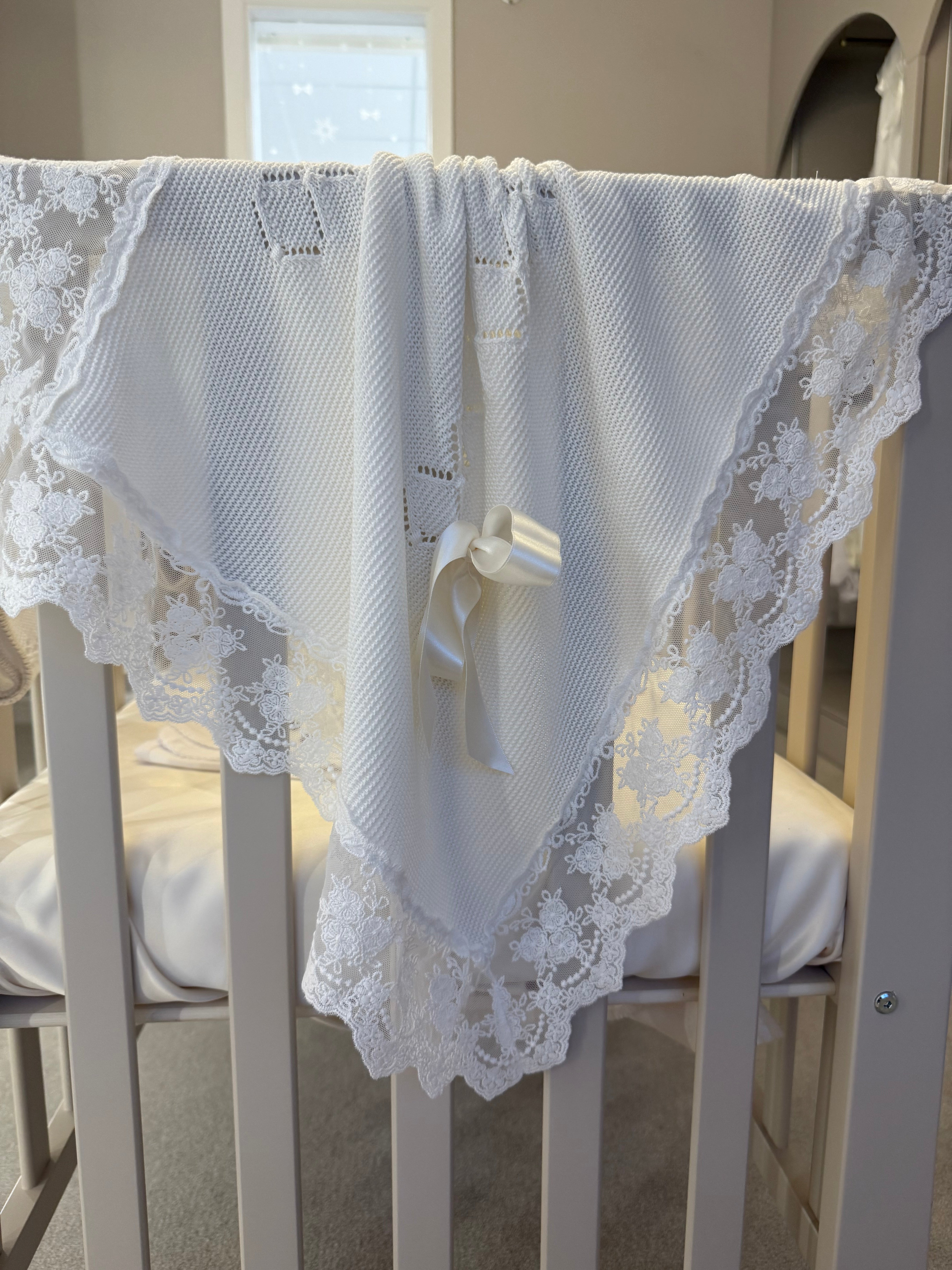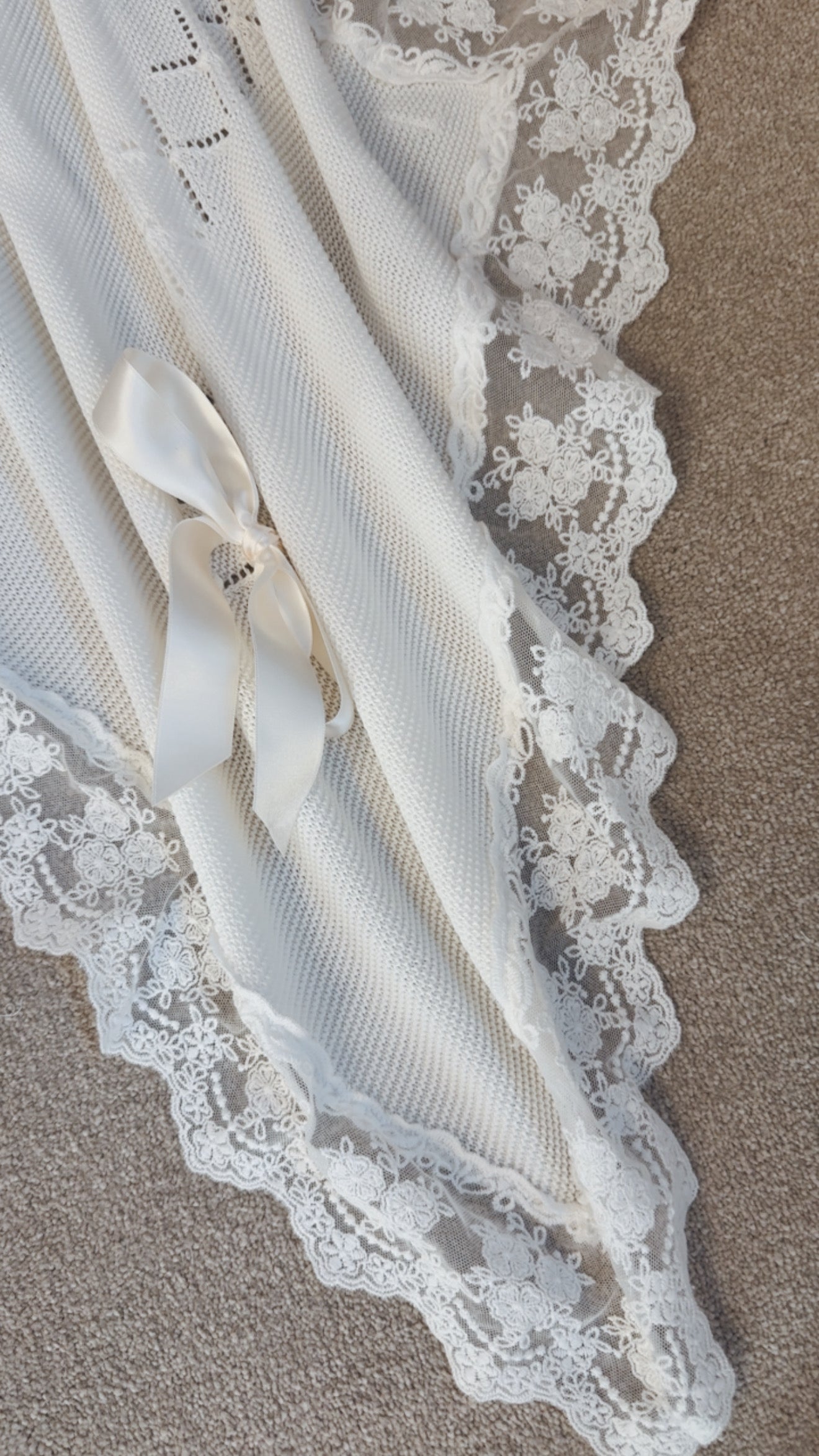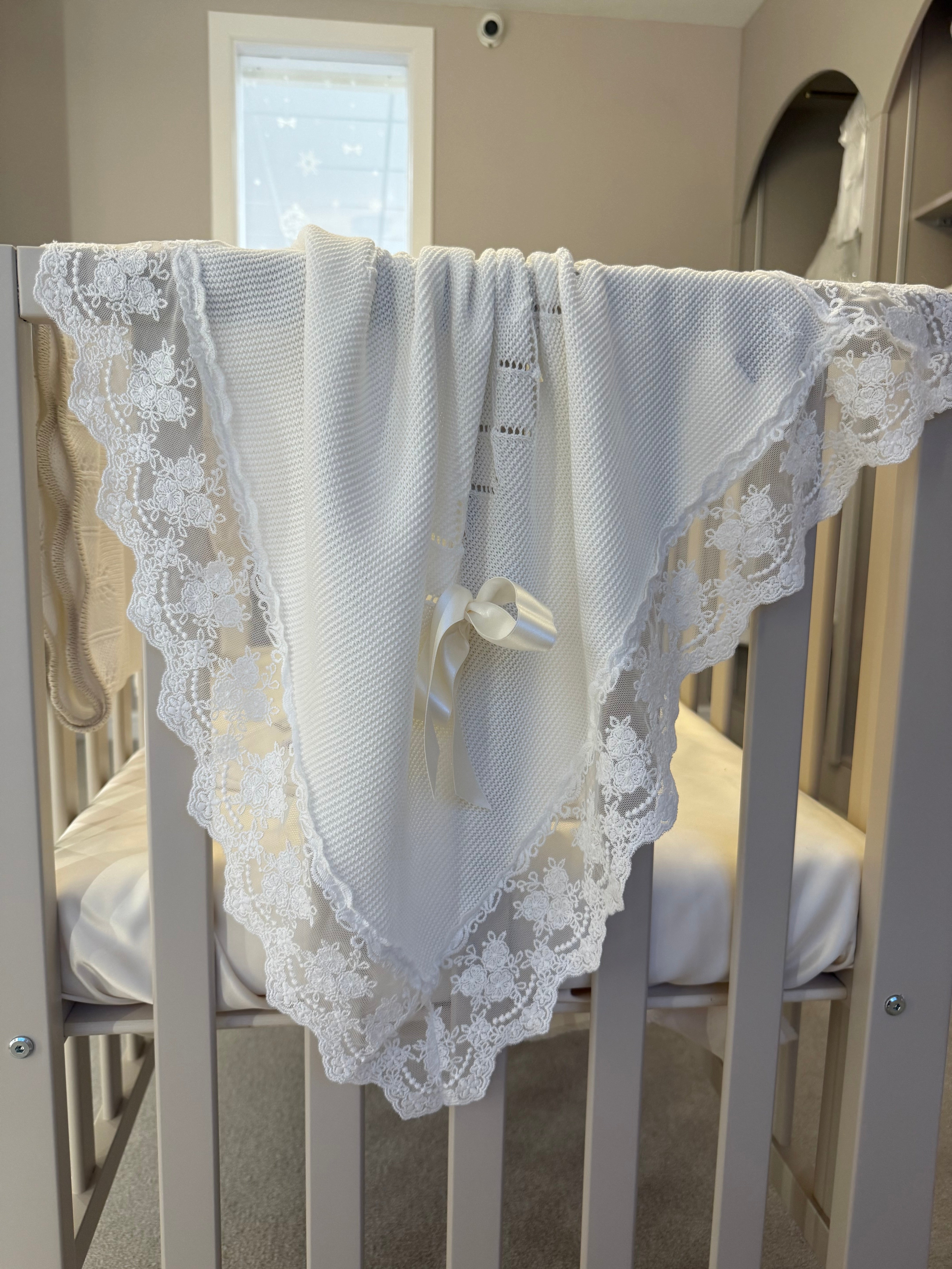 Each piece is designed with love and care, creating a gentle touch against baby’s delicate skin. The intricate lace border adds a touch of luxury, making this blanket a beautiful heirloom to treasure for years to come.
