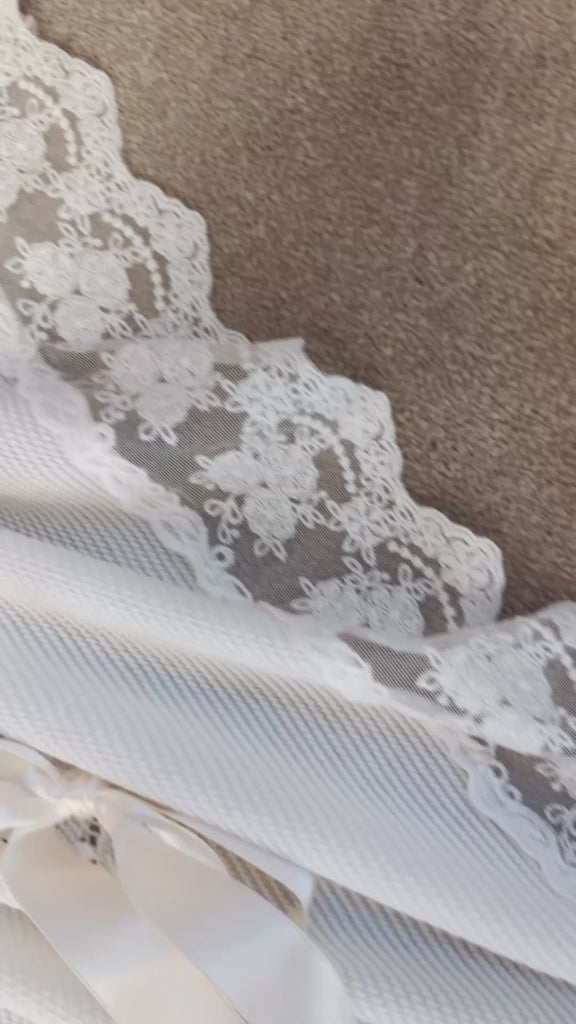 Wrap your little one in timeless elegance with our Luxury Lace Muslin Blanket. Crafted from ultra-soft, breathable muslin with an exquisite lace trim, this blanket is the perfect blend of comfort and sophistication. The delicate detailing makes it ideal for special occasions such as christenings, coming-home outfits, or keepsake photography.