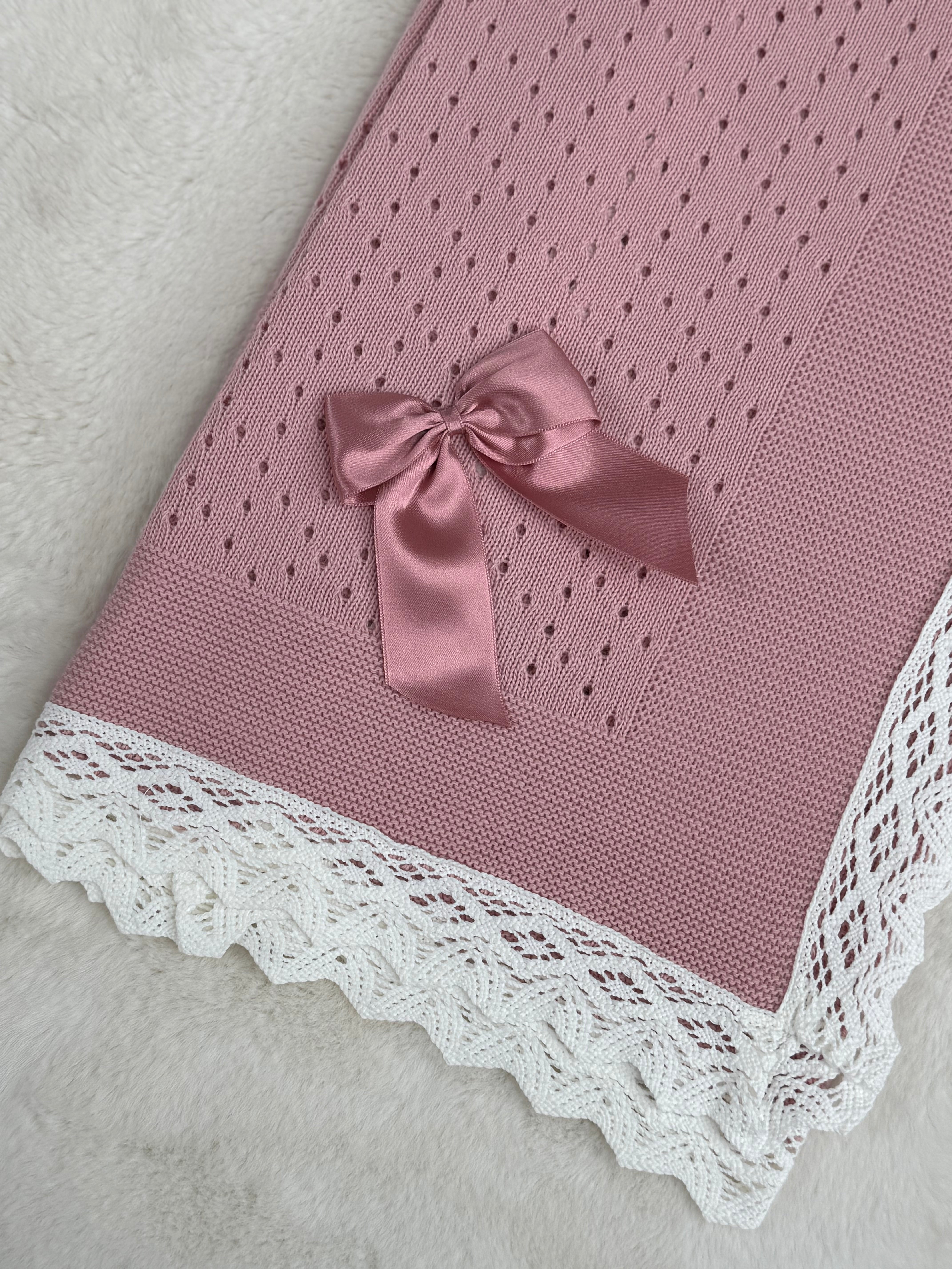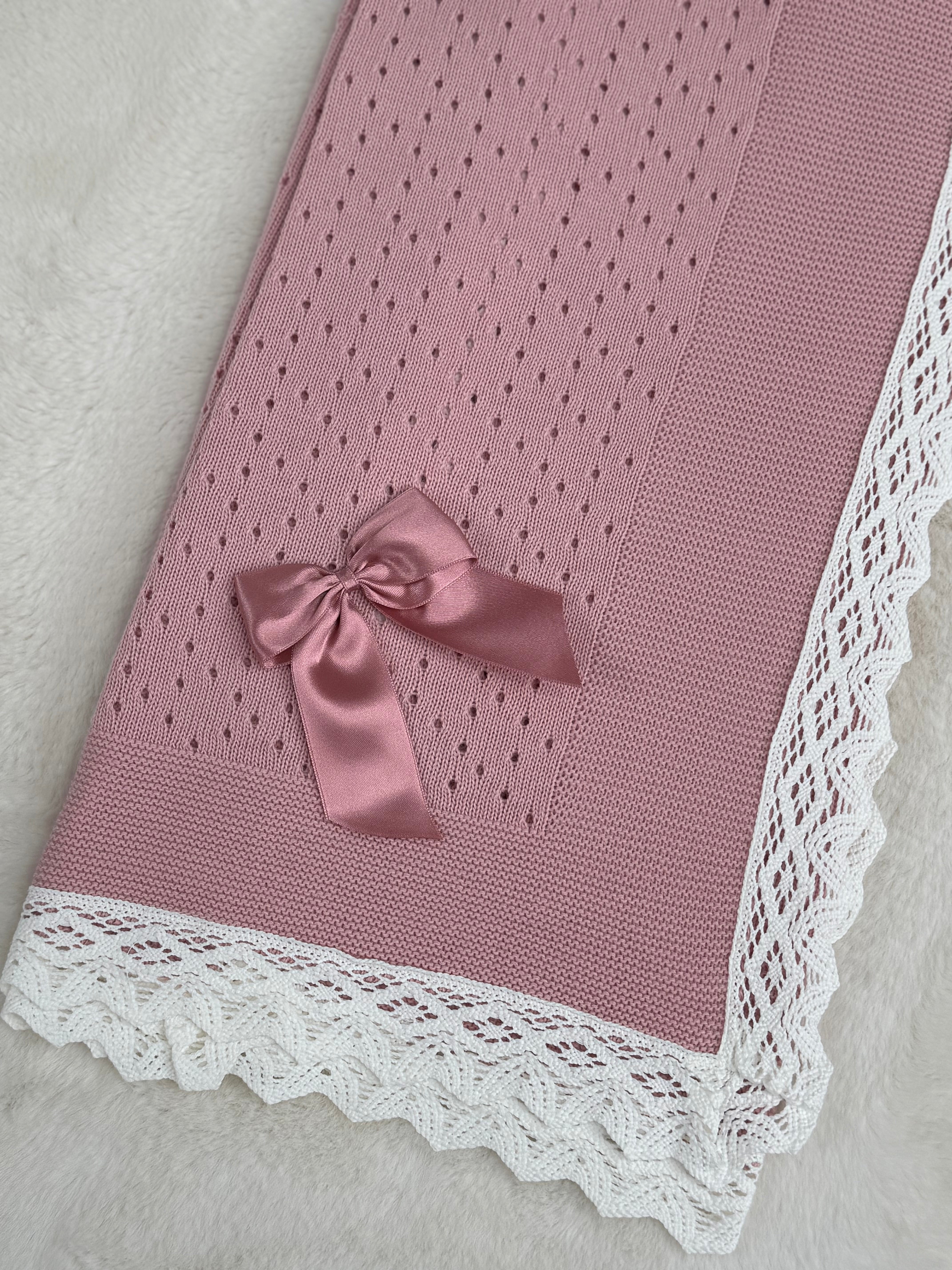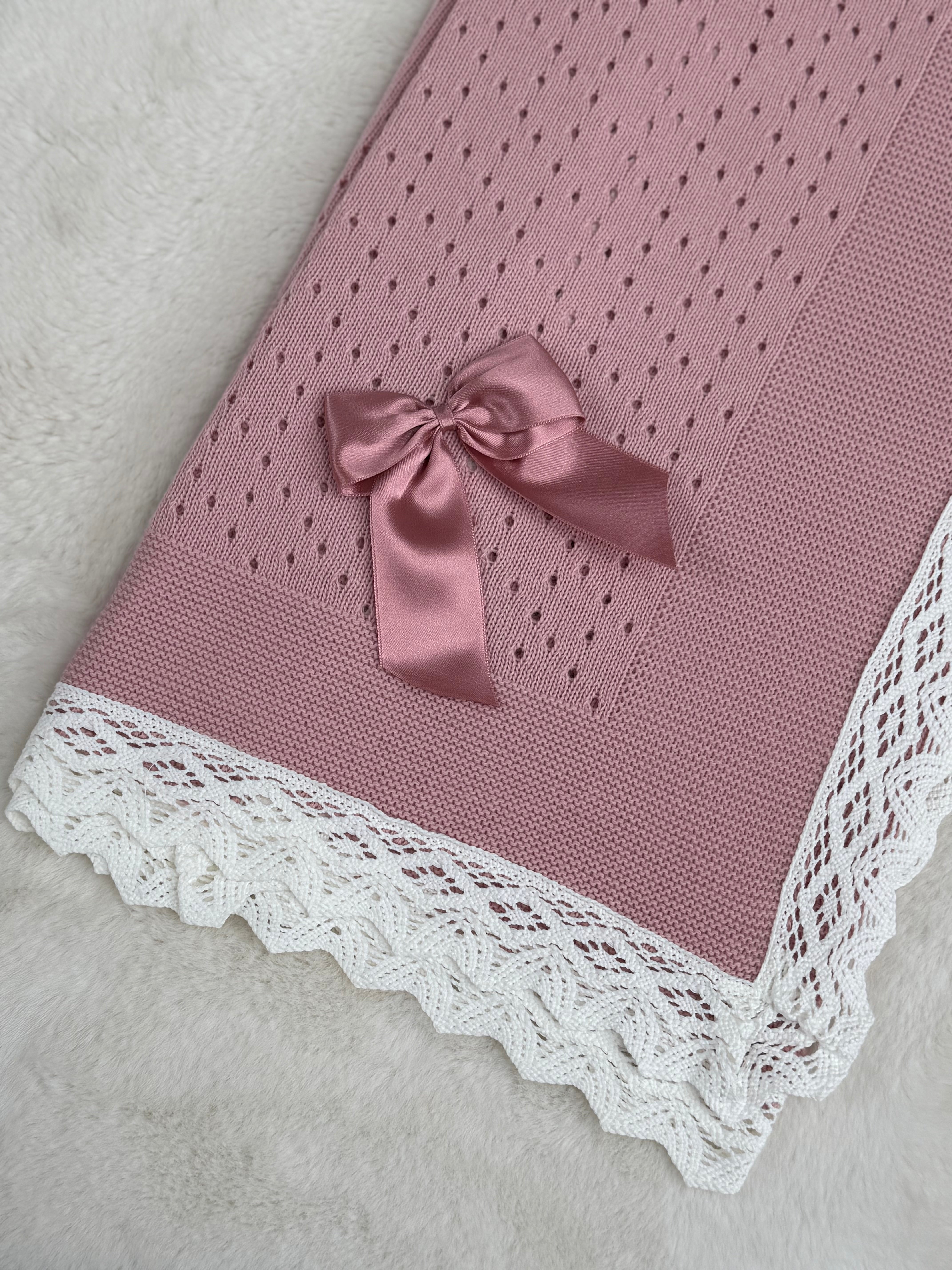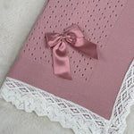Baby's Lace Dusky Pink Shawl With Cream Trim