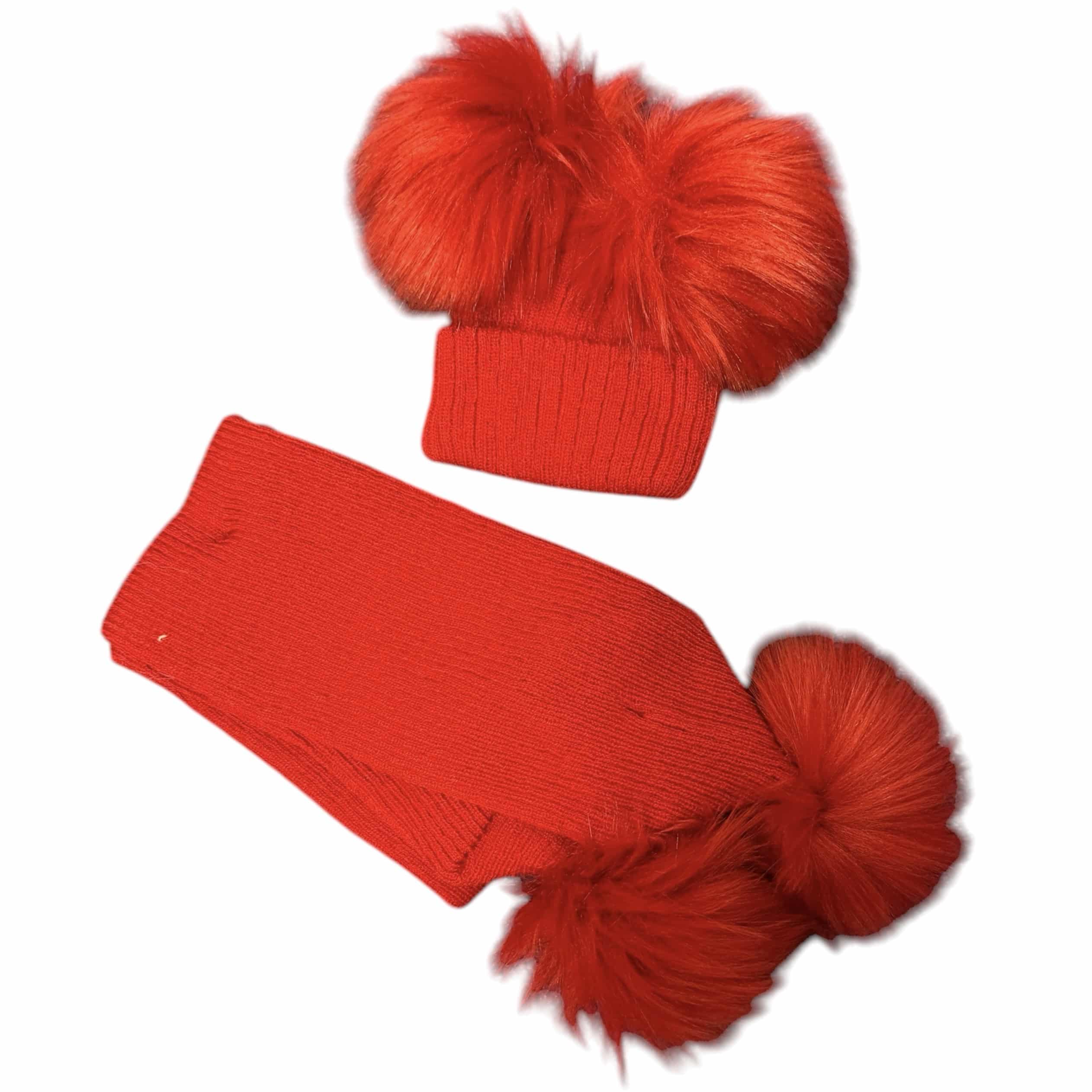 The pom poms are Faux typically made from synthetic polymeric fibers such as acrylic, modacrylic, and/or polyester. The scarf made from Acrylic.