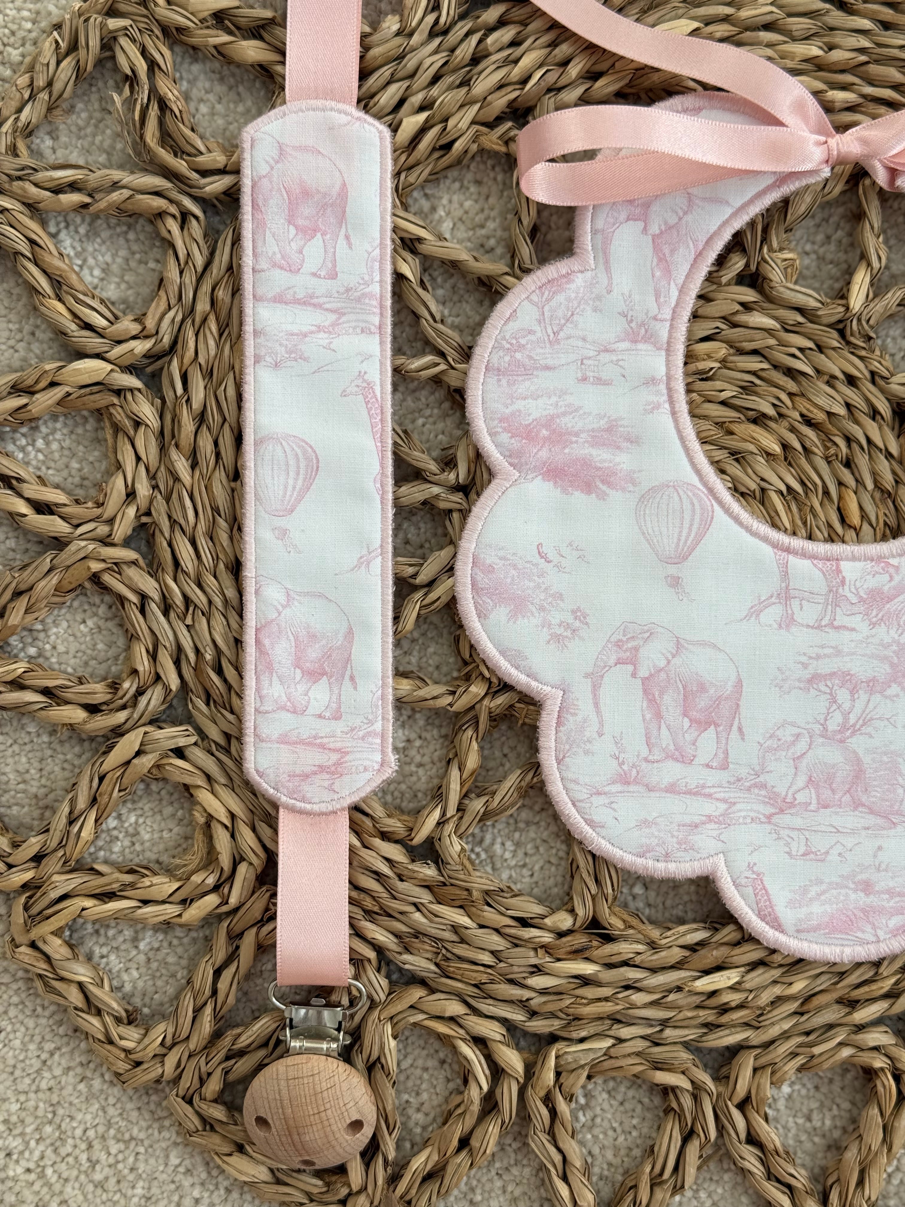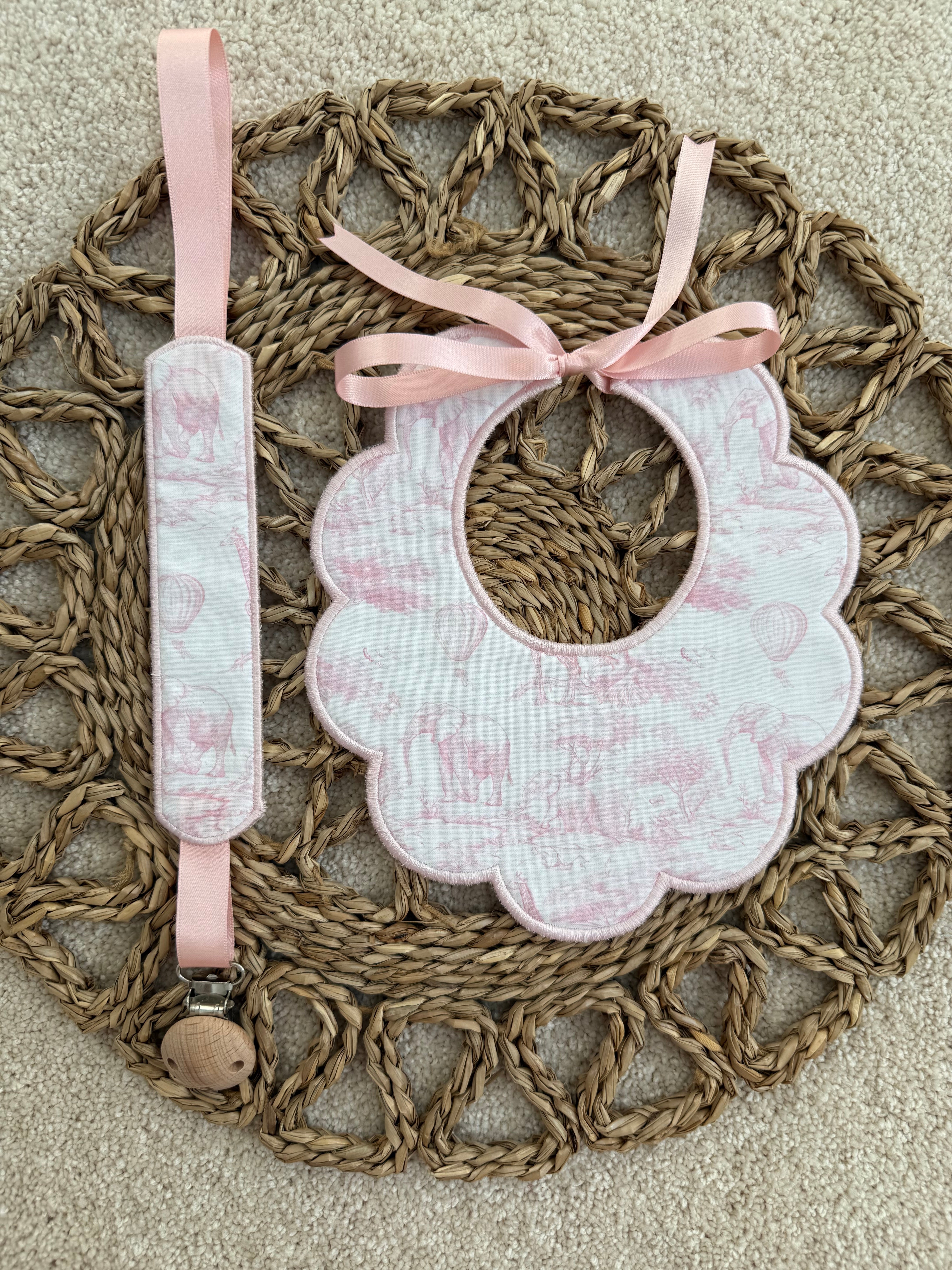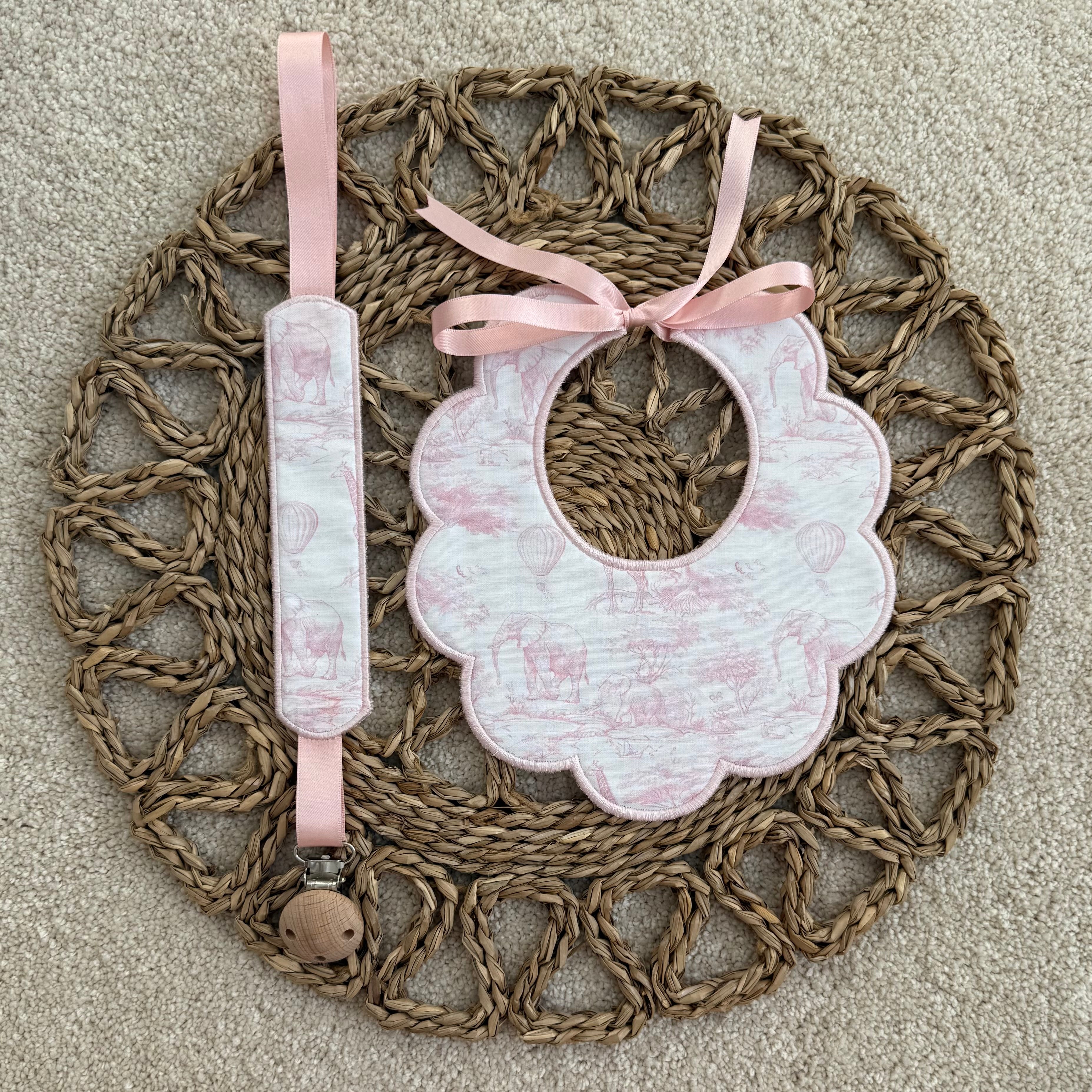 Baby's Safari Baby Pink Scallop Handmade Bib & Dummy Clip